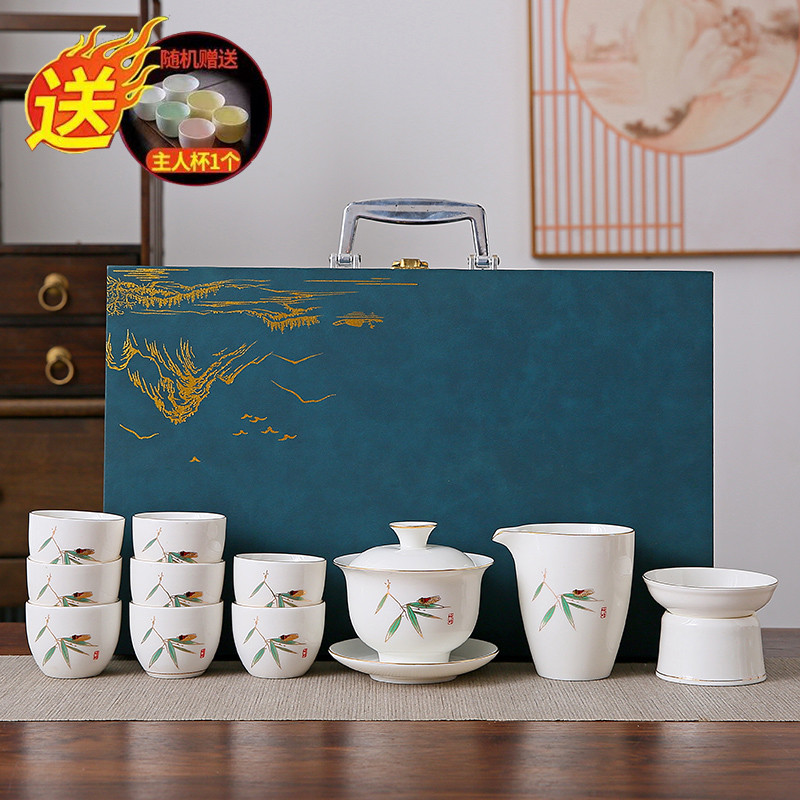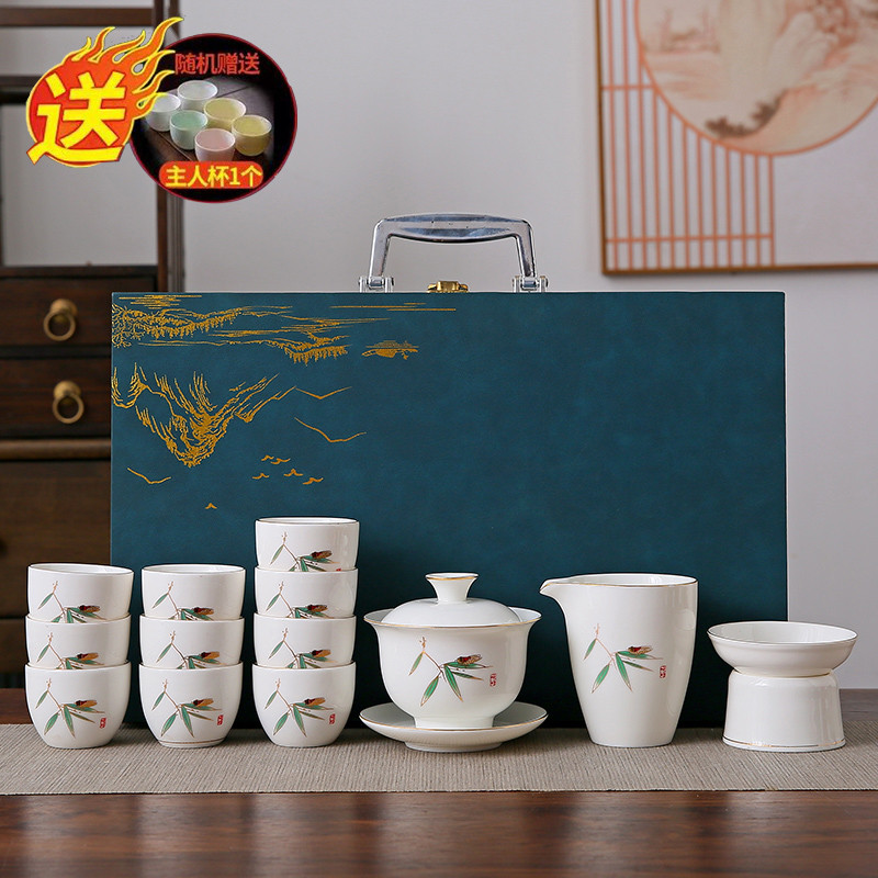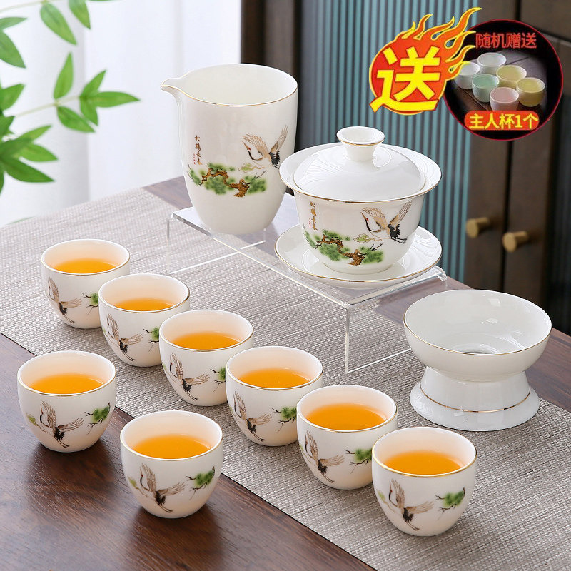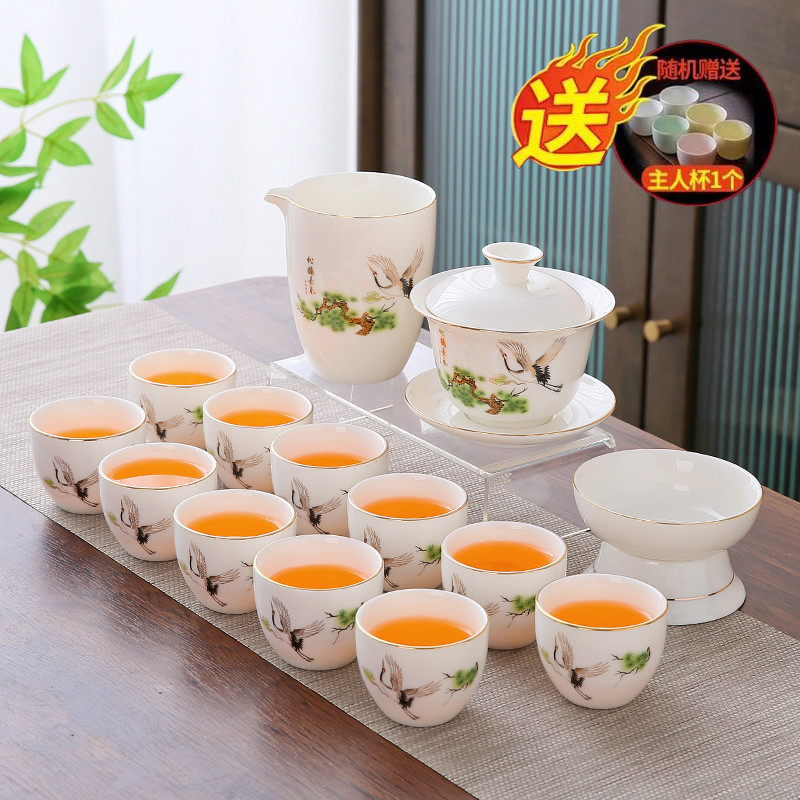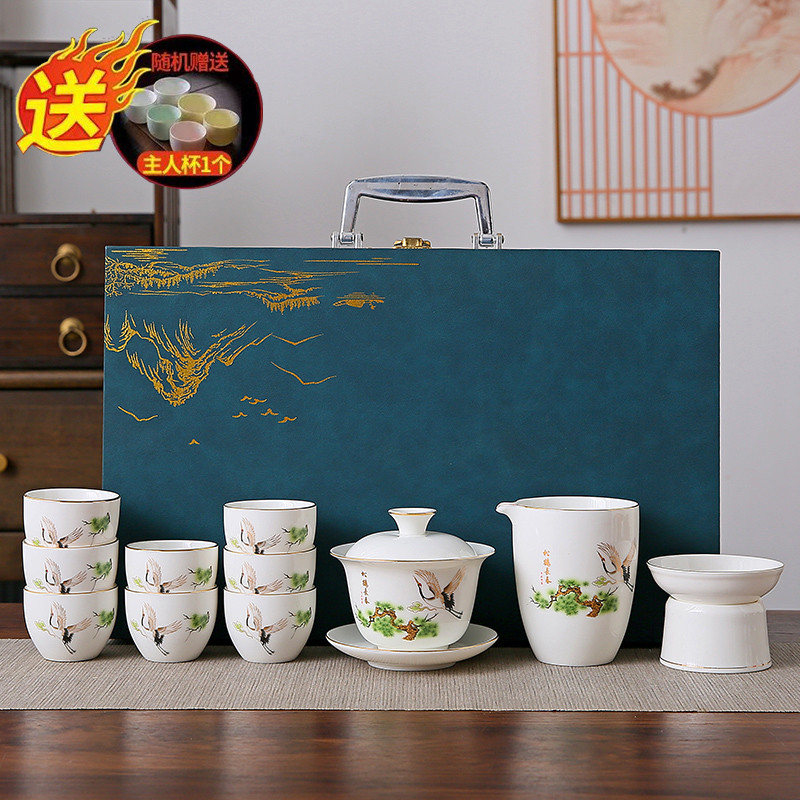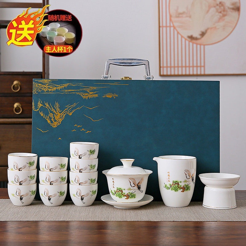 white jade 14-piece set (pine crane yannian) gold (gift box)