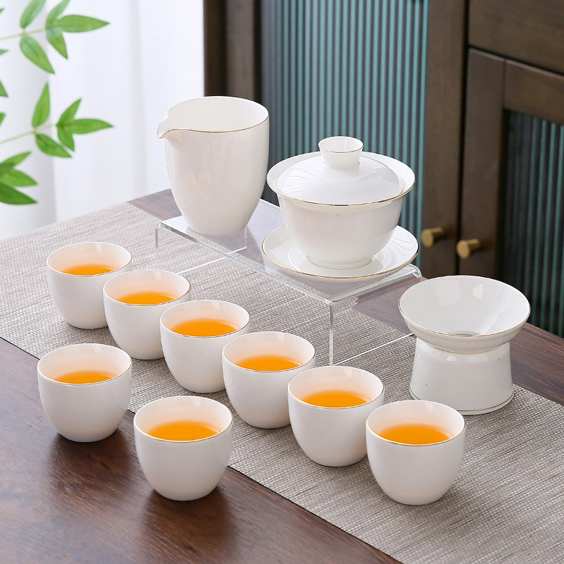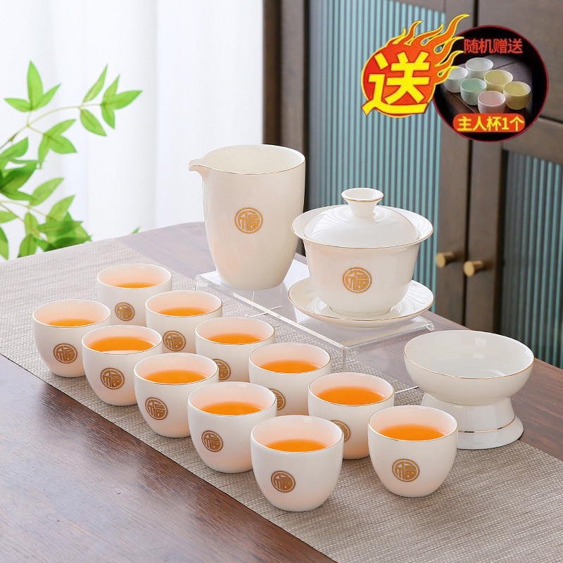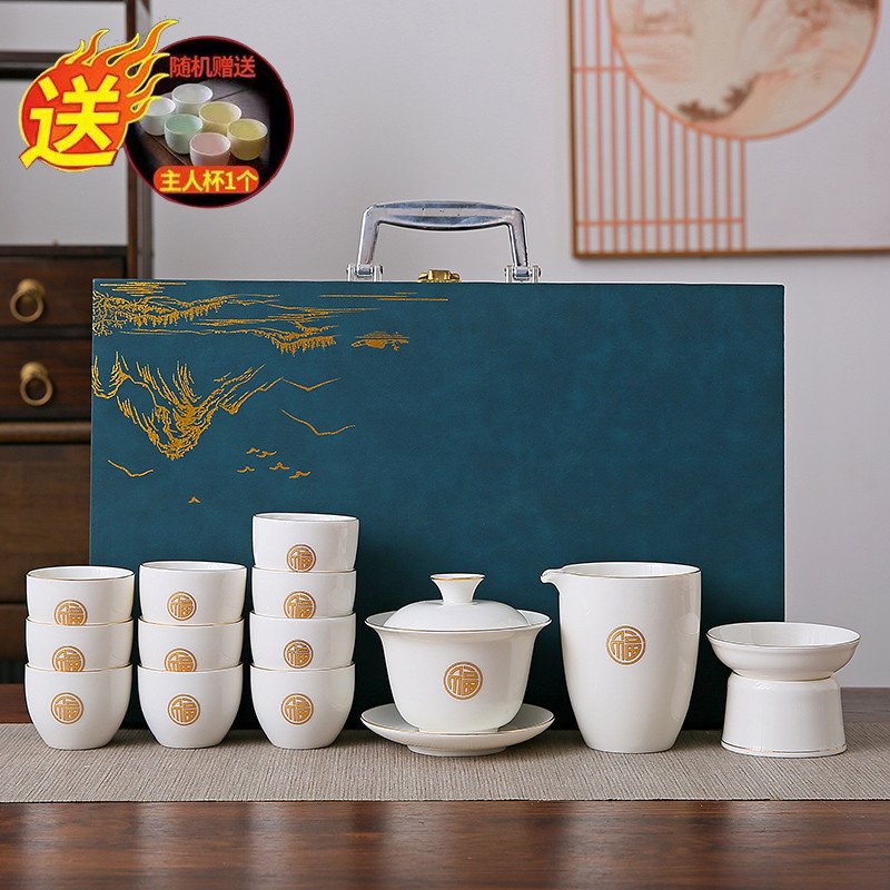white jade 14-piece set (jinfu) gold (gift box)
