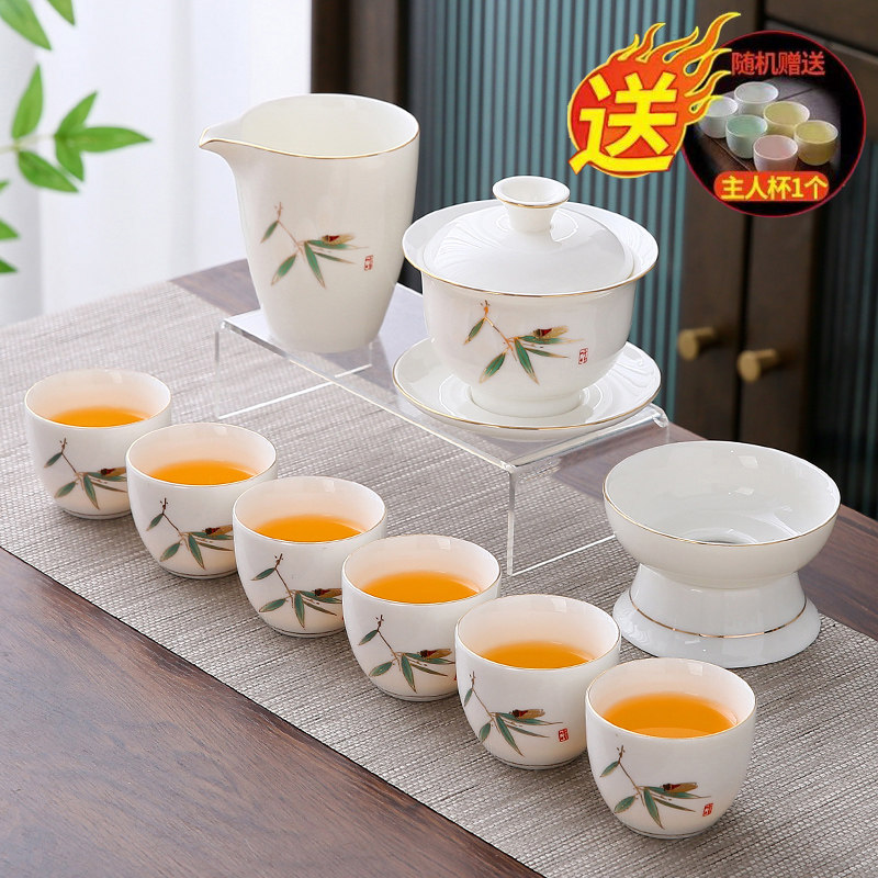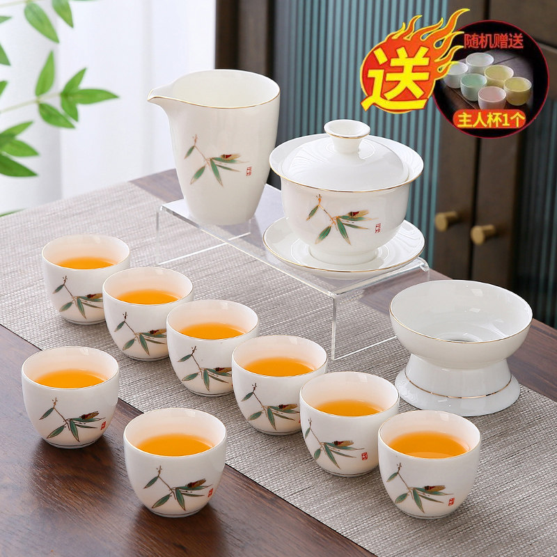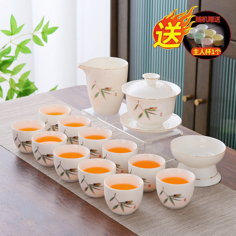 white jade 14-piece set (bamboo presages safety) gold (gift box)