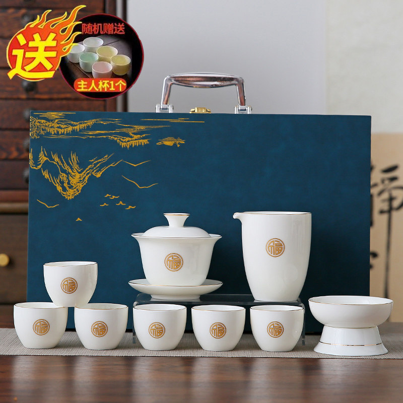 white jade 10-piece set (jinfu) gold (gift box)