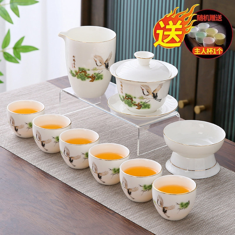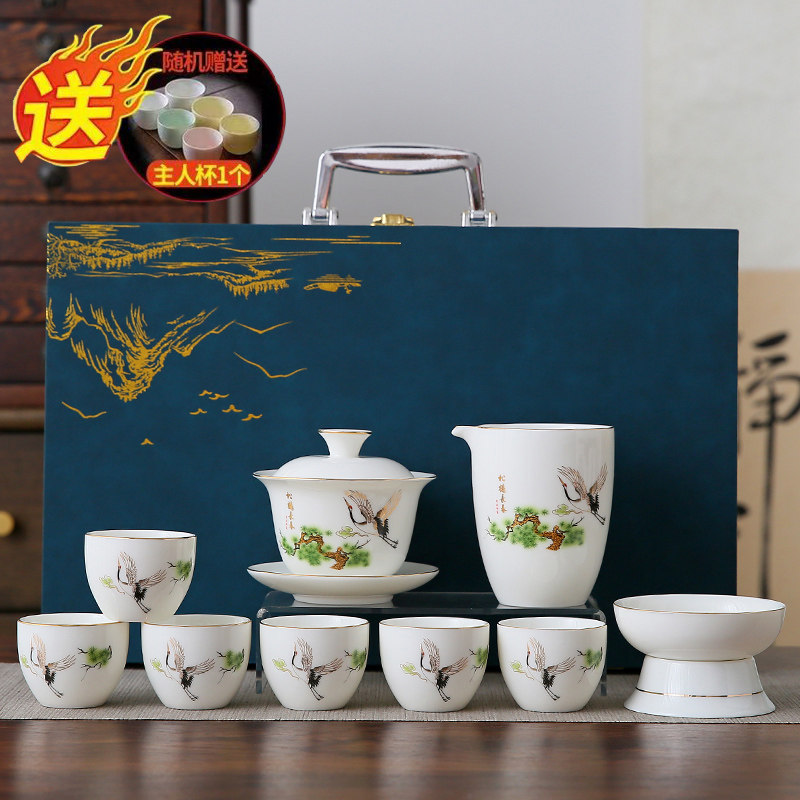 white jade 10-piece set (pine crane yannian) gold (gift box)