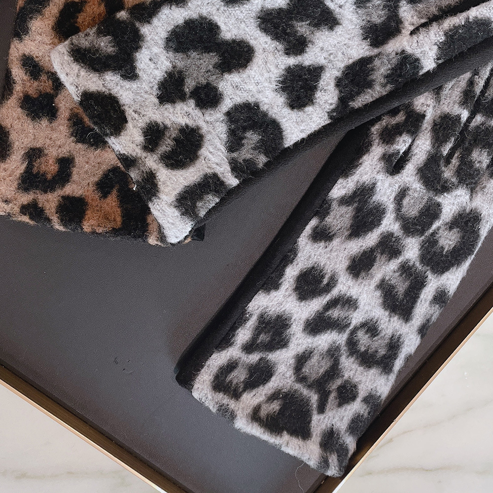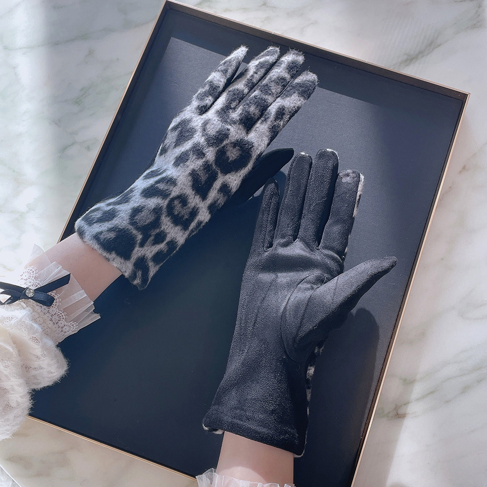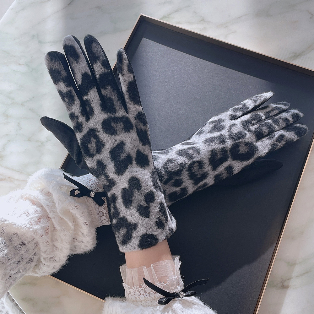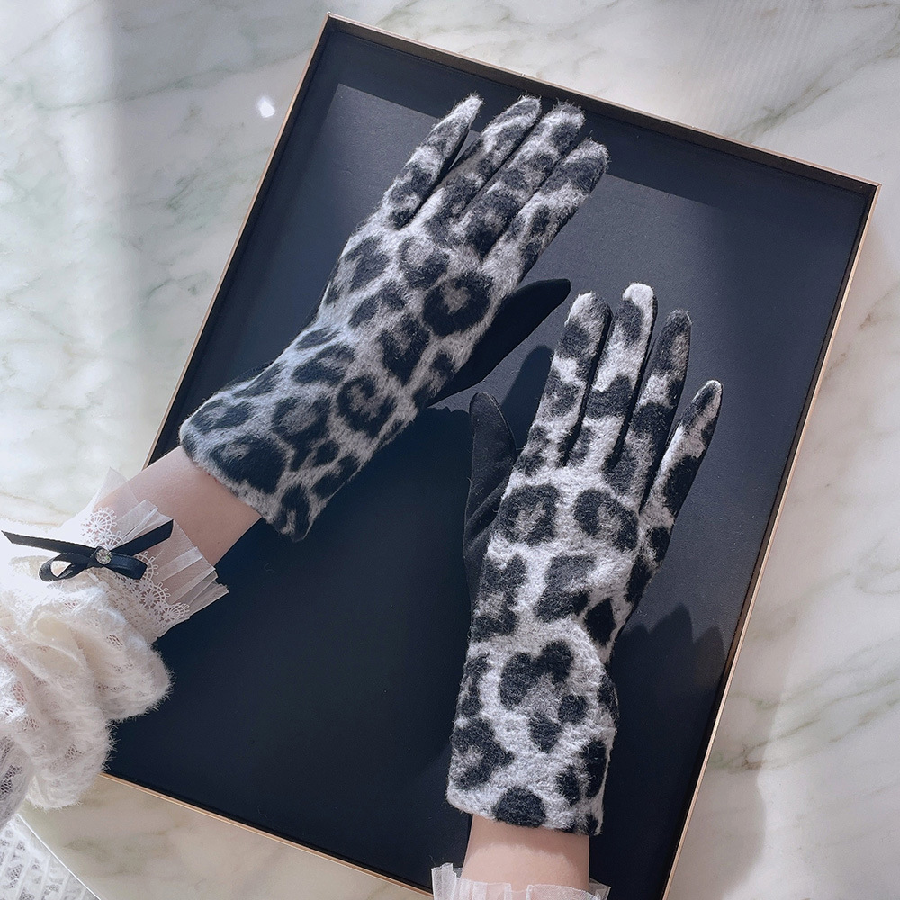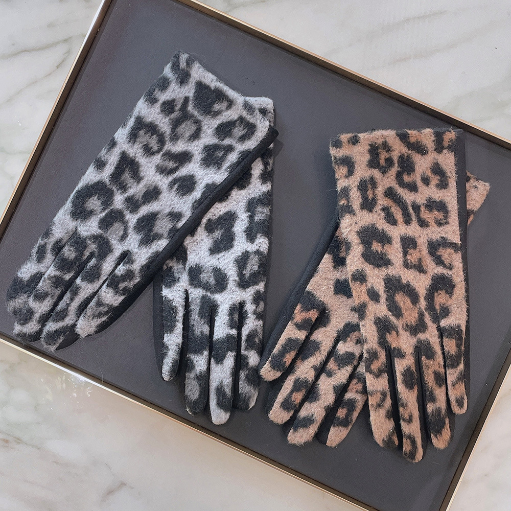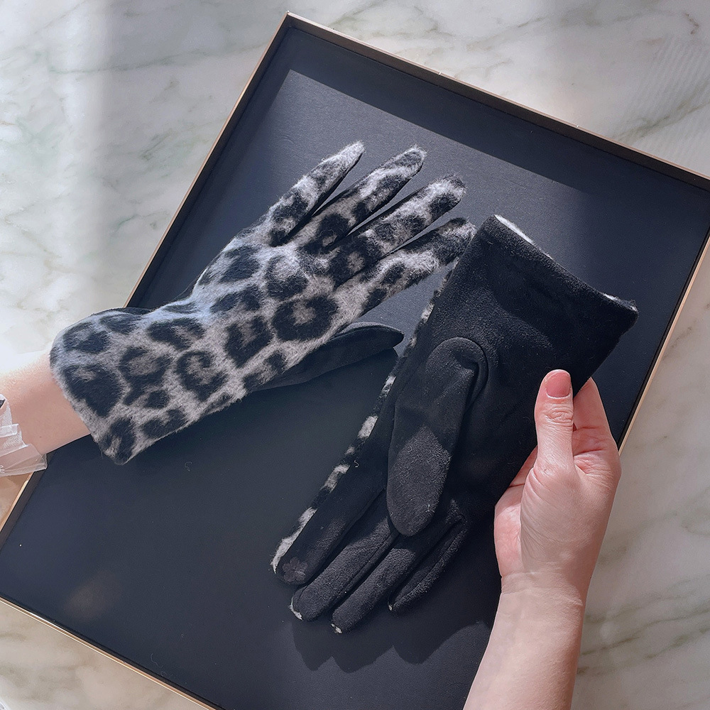 intellectual wool leopard-print gloves black gray