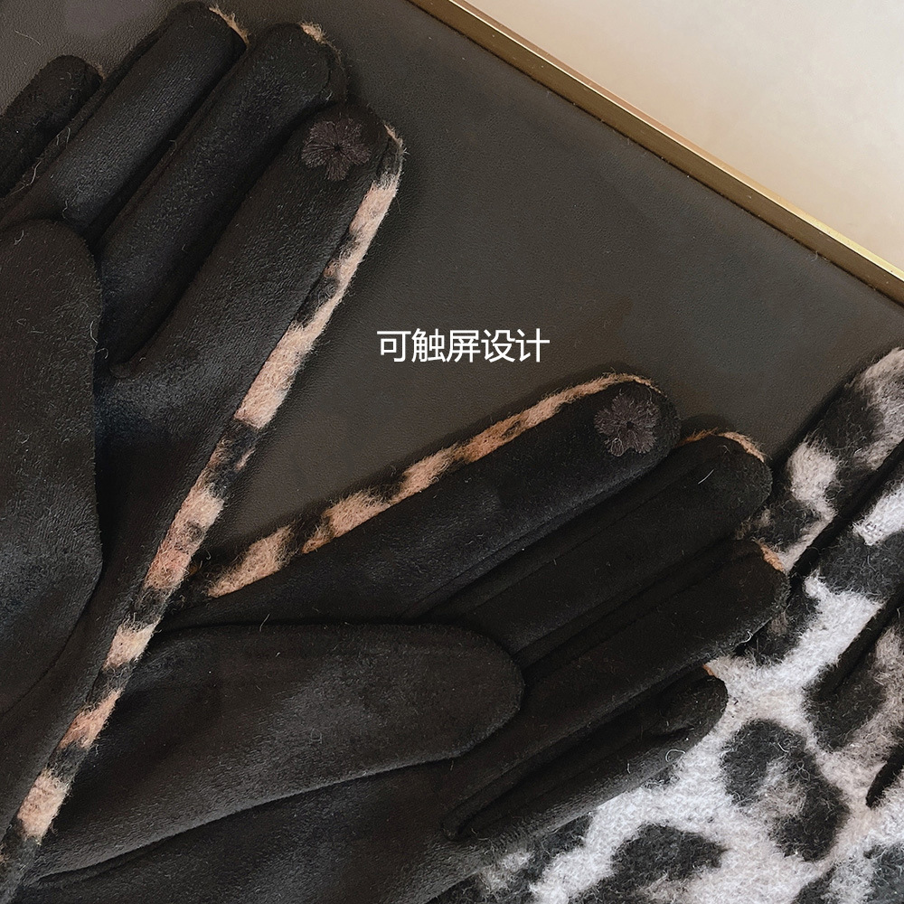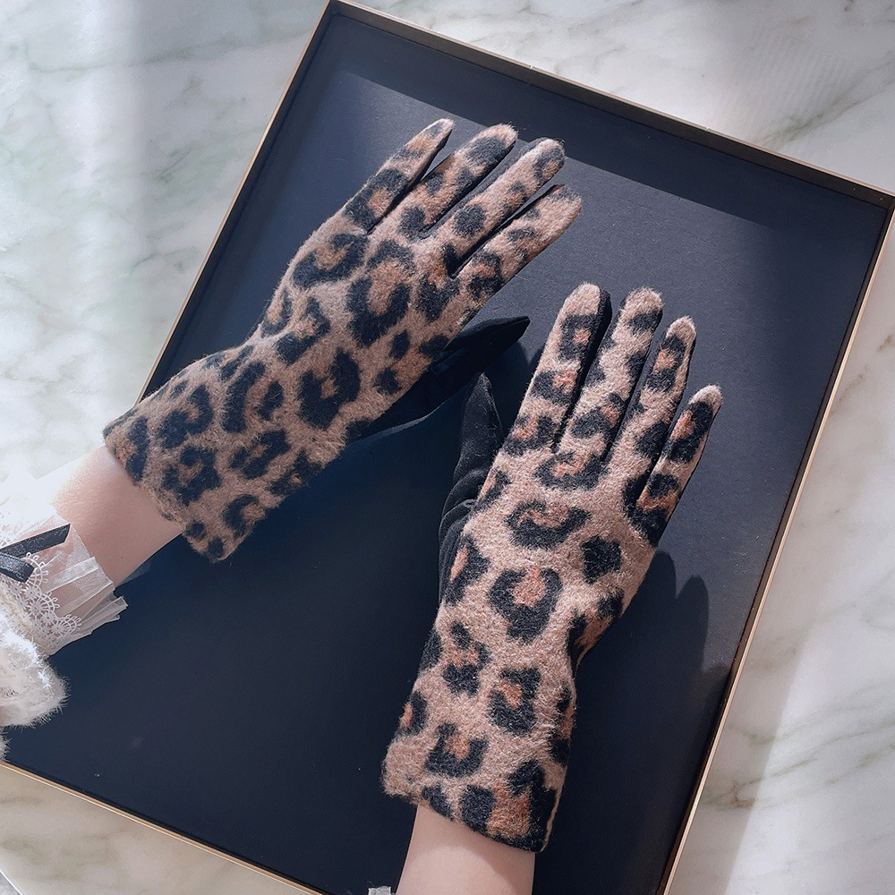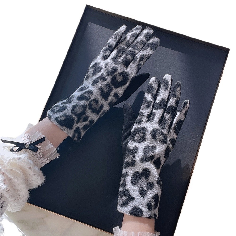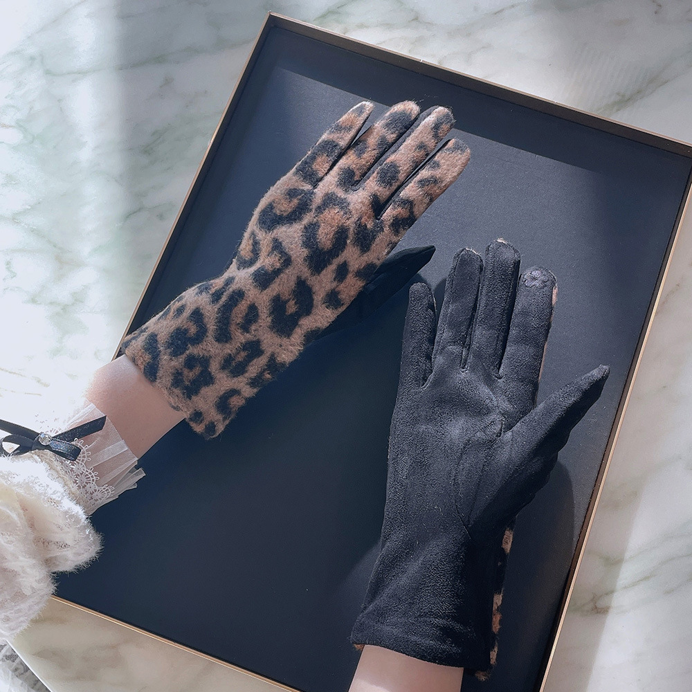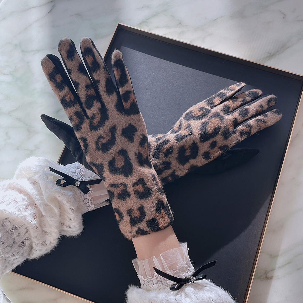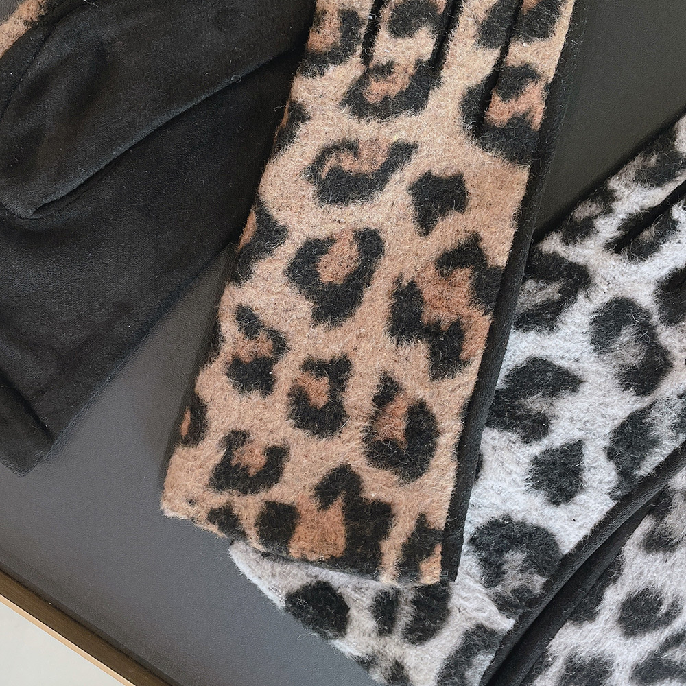 intellectual wool leopard-print gloves black gray