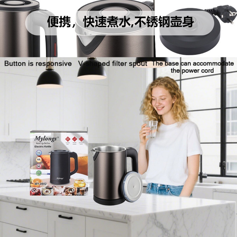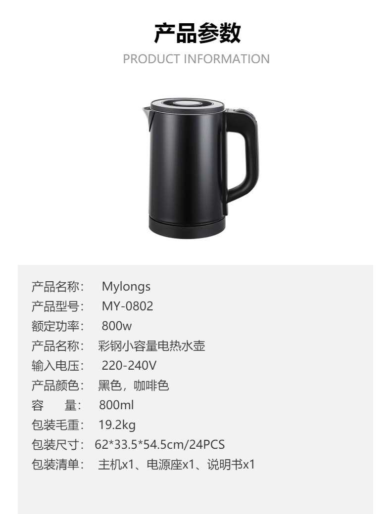 Factory Direct Sale Exporting Stock 0.8L Small Capacity Mylongs MY-0802 Electric Kettle