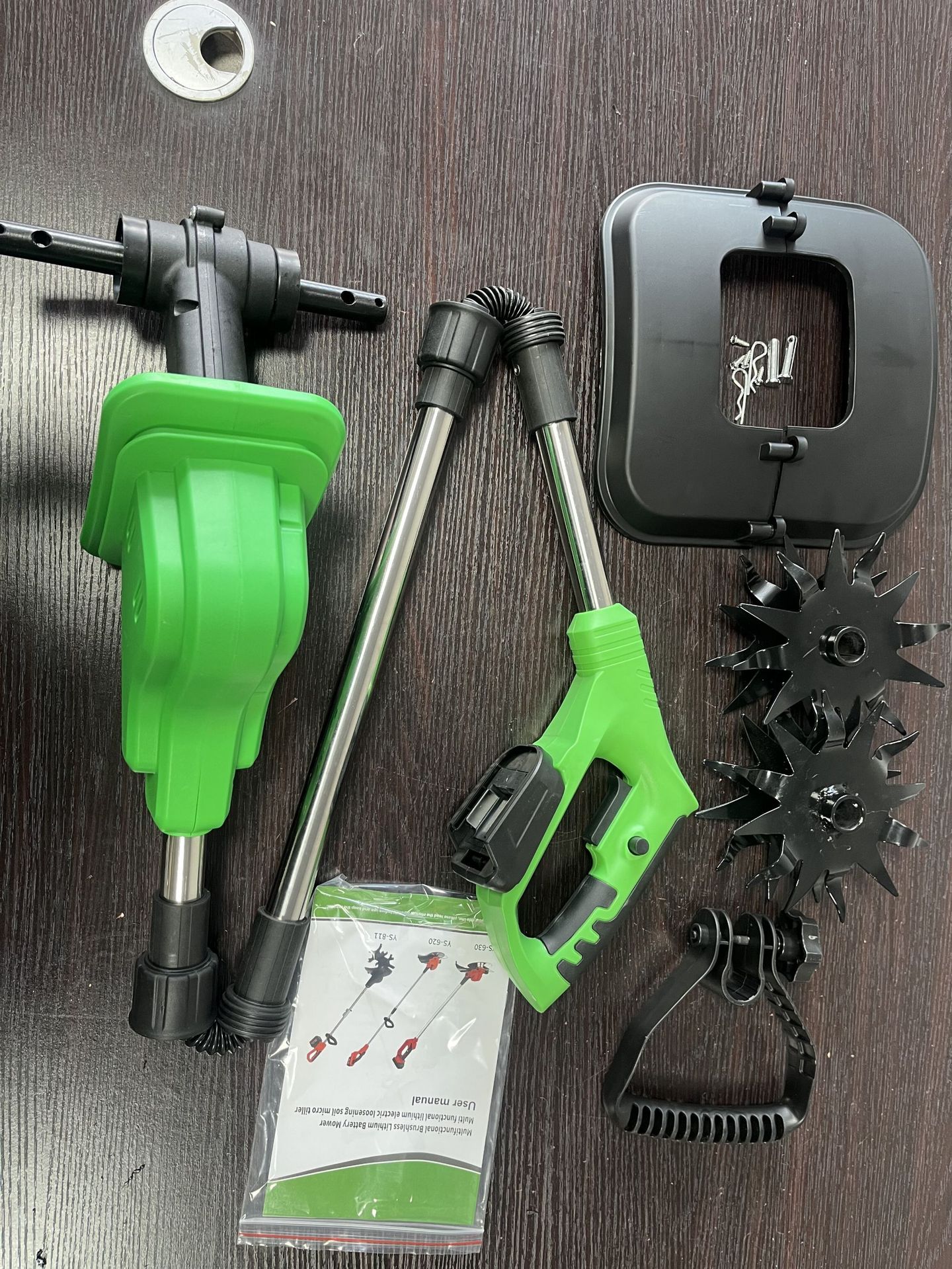 dual-use lithium electric micro-tiller 198tv15 with 15 cells, two batteries and one charger.