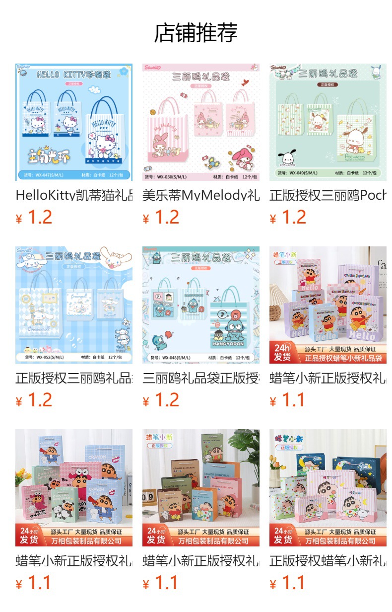 Our store has official licenses for Sanrio characters and Crayon Shin-chan. If you are interested in cooperation or need to purchase, please contact our customer service for preferential factory prices.