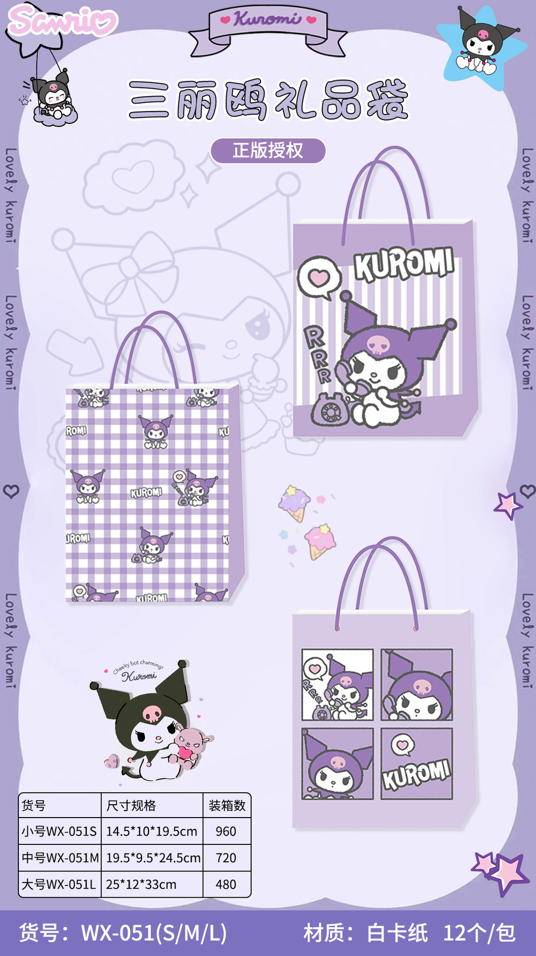four-grid-kuromi; small size 14.5*10*19.5cm