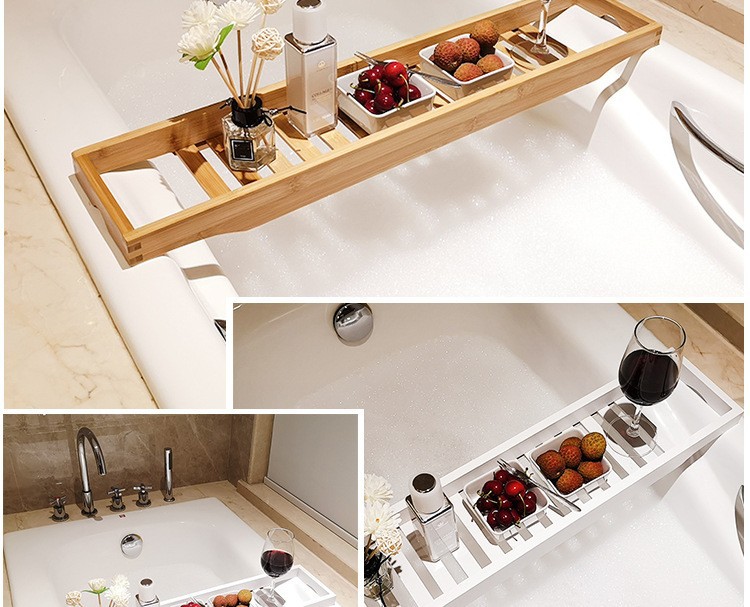 bamboo wooden bathtub tray telescopic storage rack bathroom parcel shelf multifunctional bathtub bathing shelf