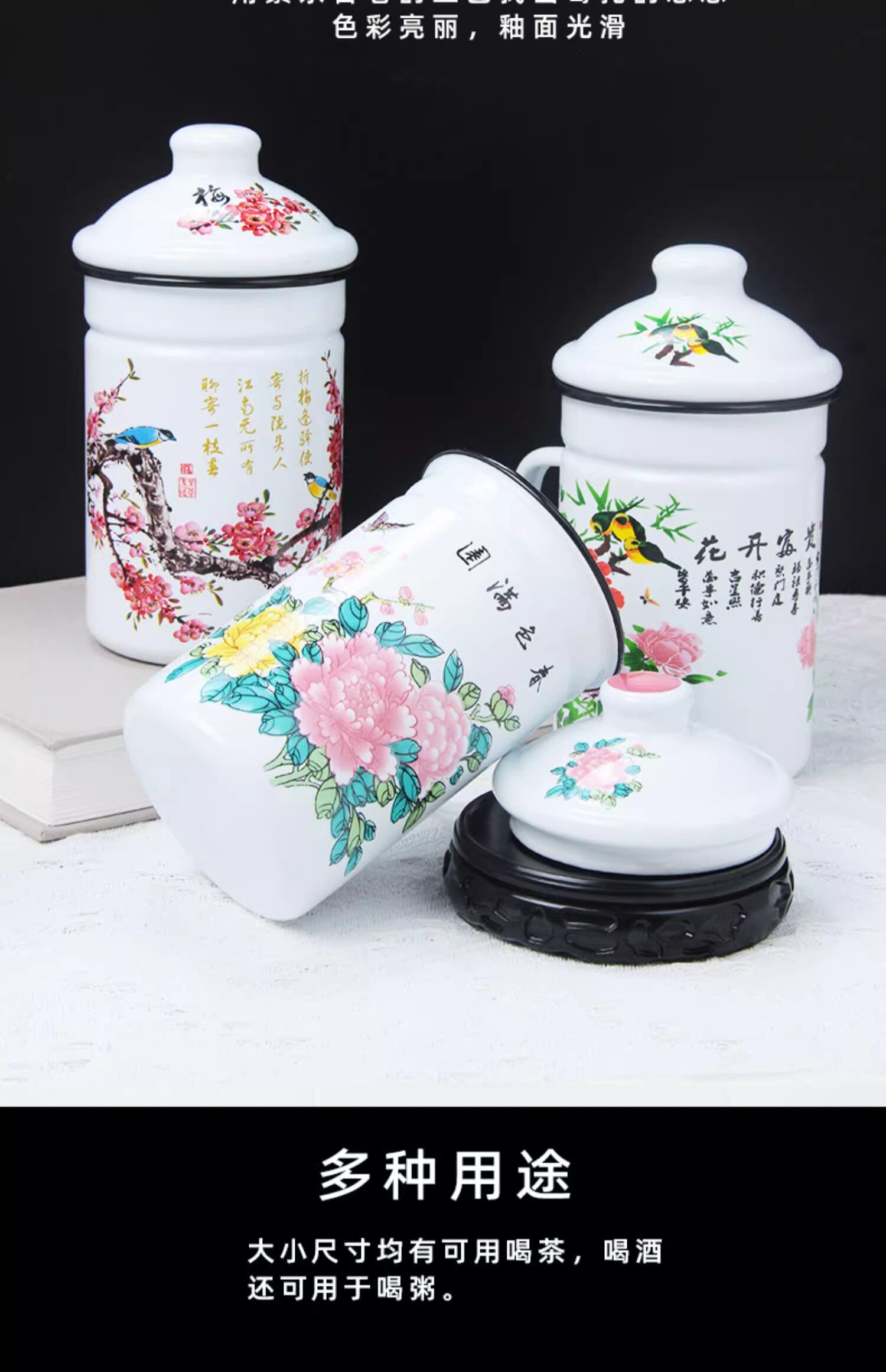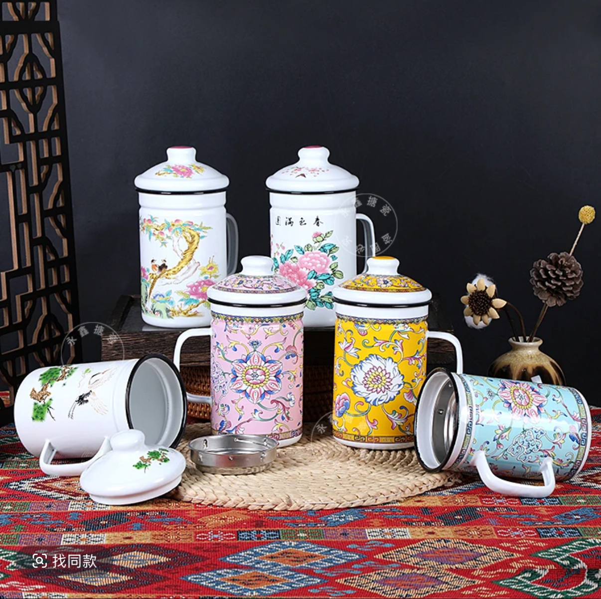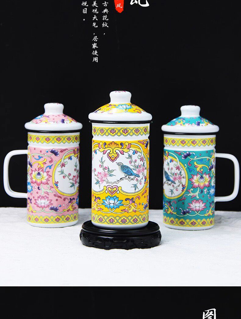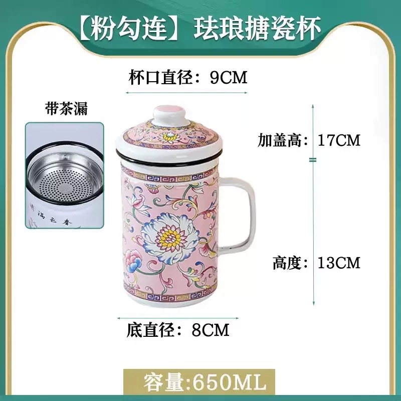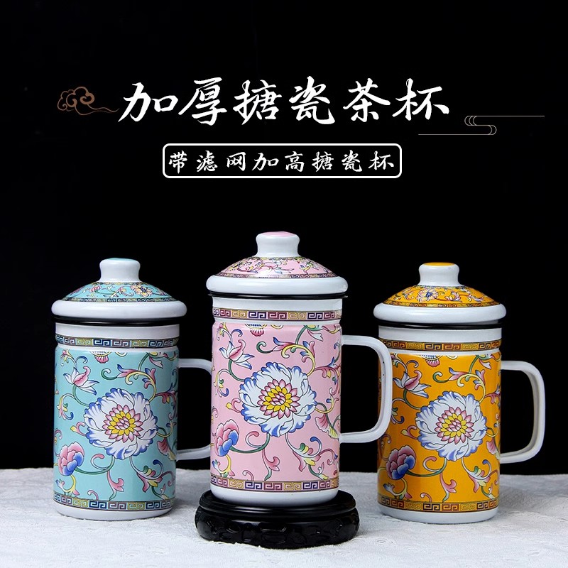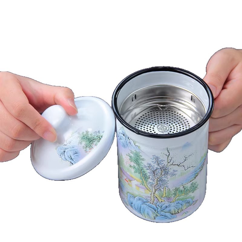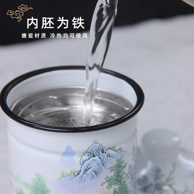 gaosheng enamel tea cup with tea strainer strainer water cup with filter screen old-fashioned iron porcelain water tank chinese tea brewing national trendy style