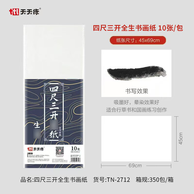 four feet quarto half-sized xuan, 10 sheets per pack (34*69cm), 0.09kg