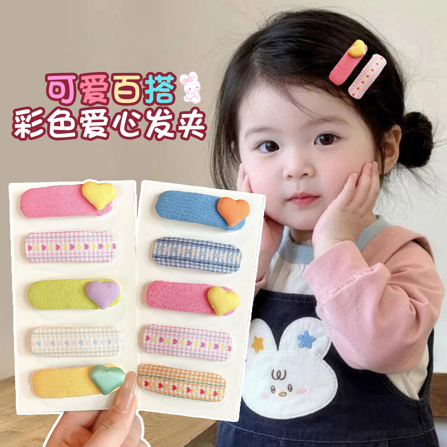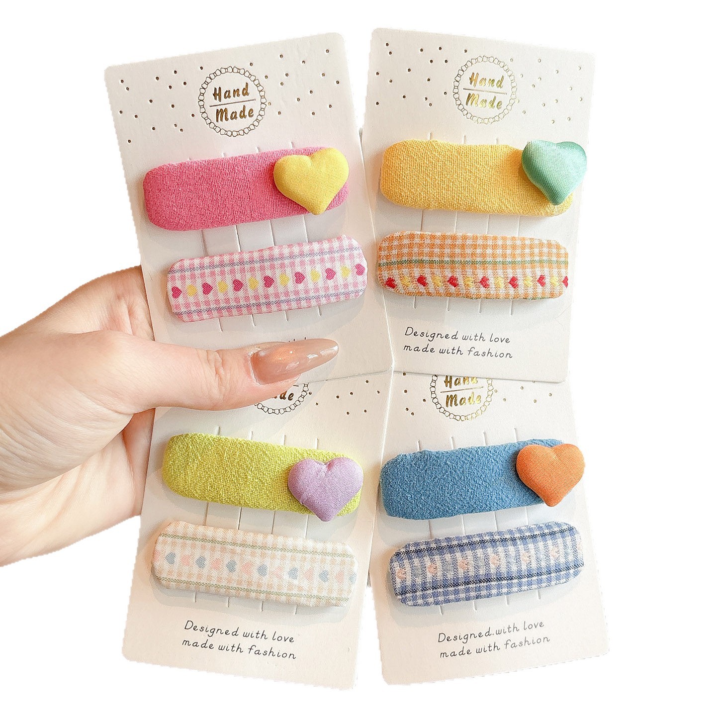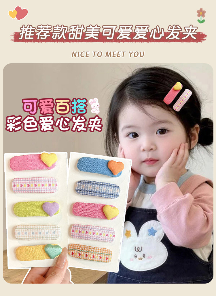 korean style children's love plaid cloth hairpin cute baby does not hurt hair shredded hairpin girls fresh bang side clip