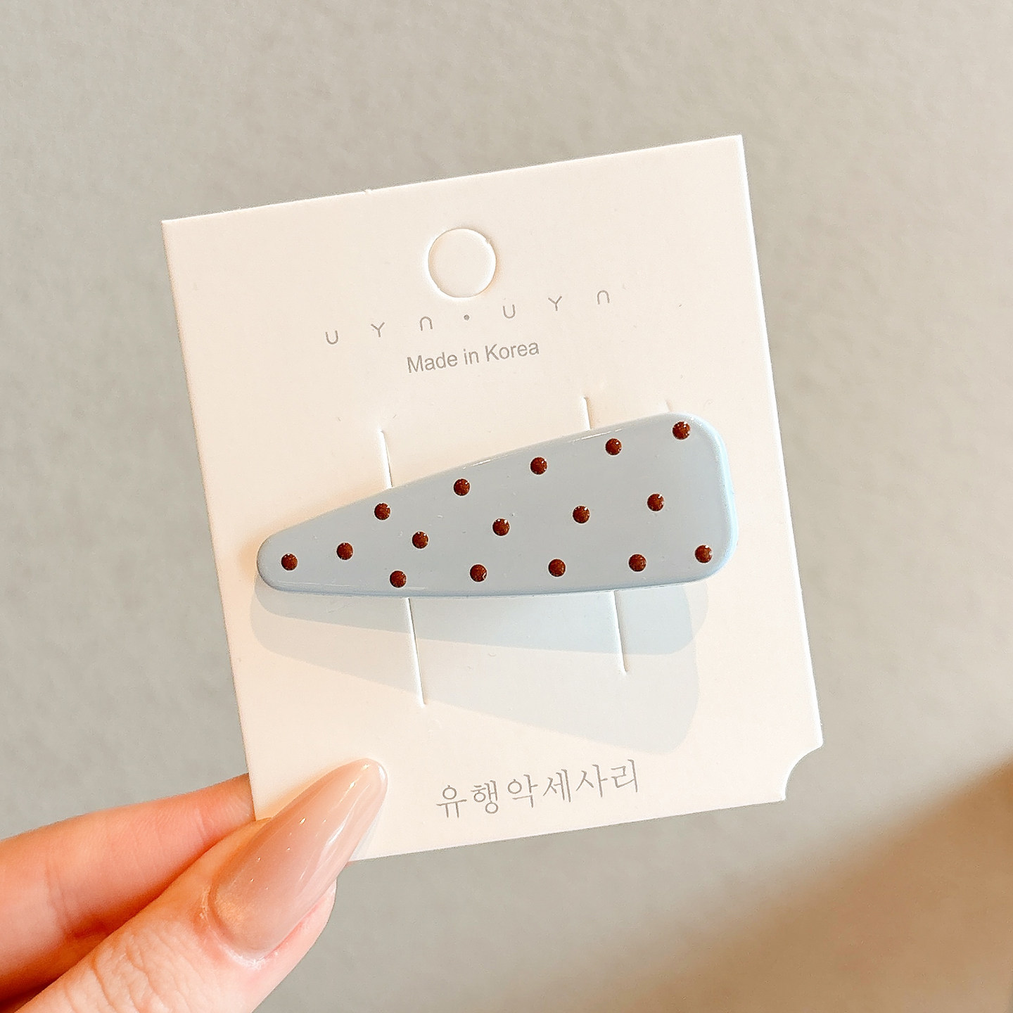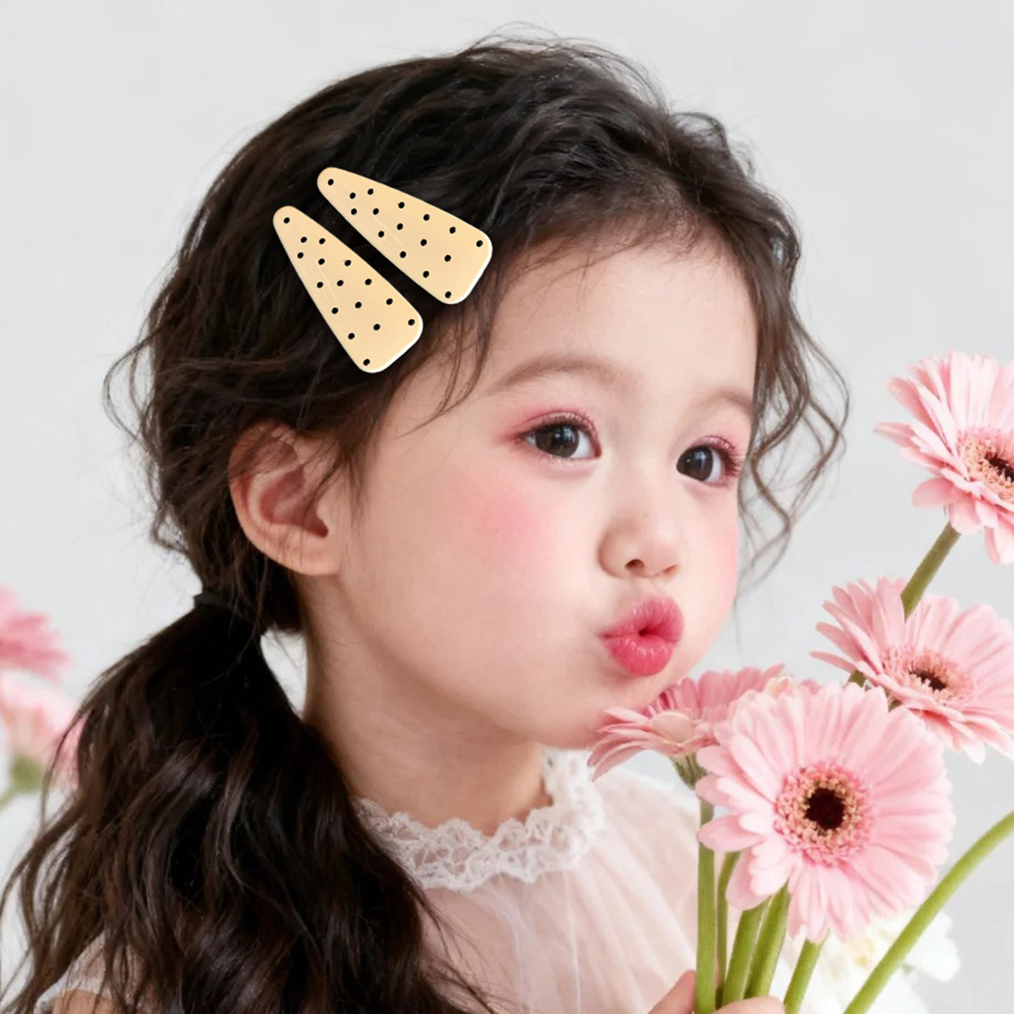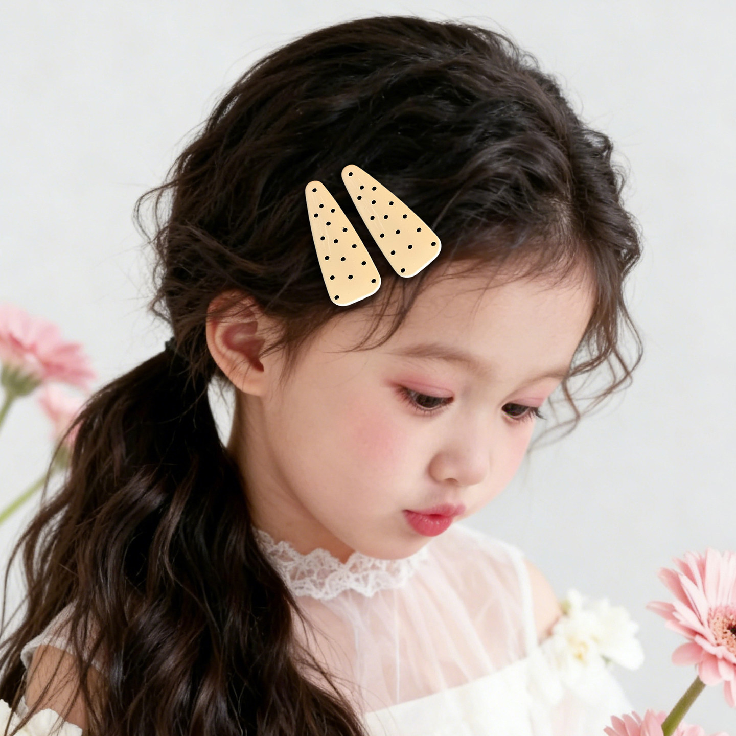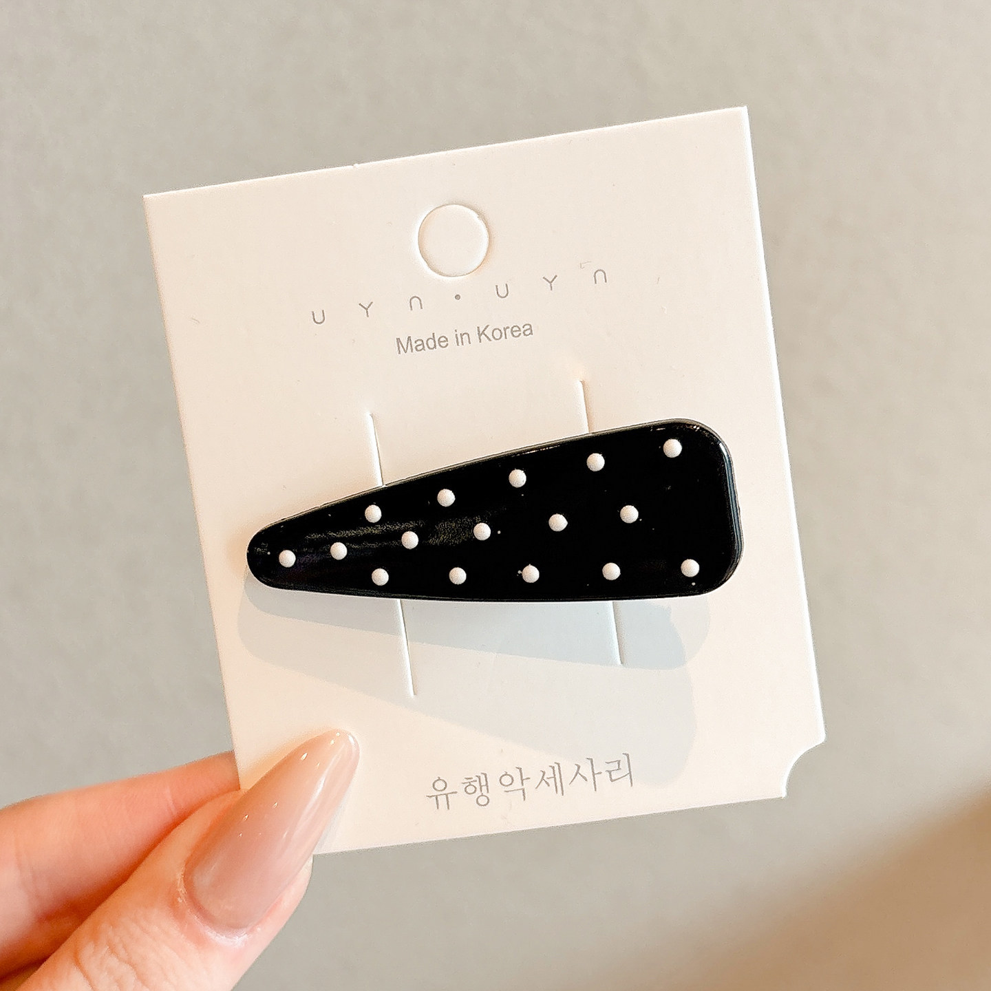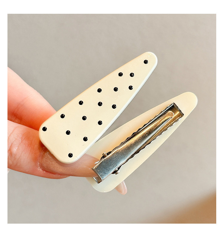 2# beige black polka dot barrettes approx. 5.7cm
