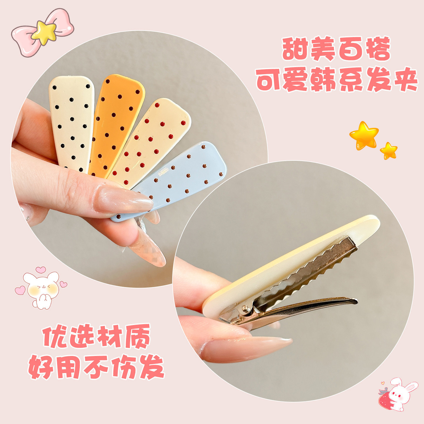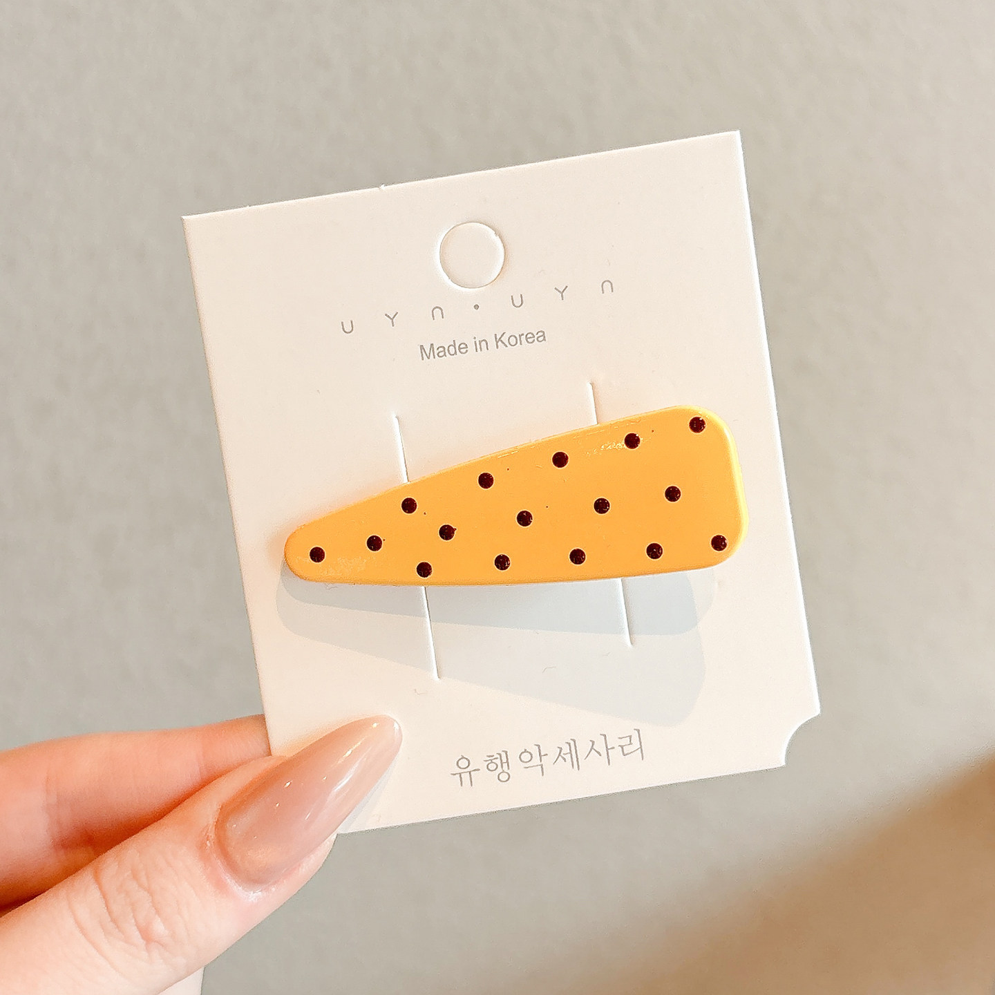 #1 yellow with polka dots barrettes about 5.7cm
