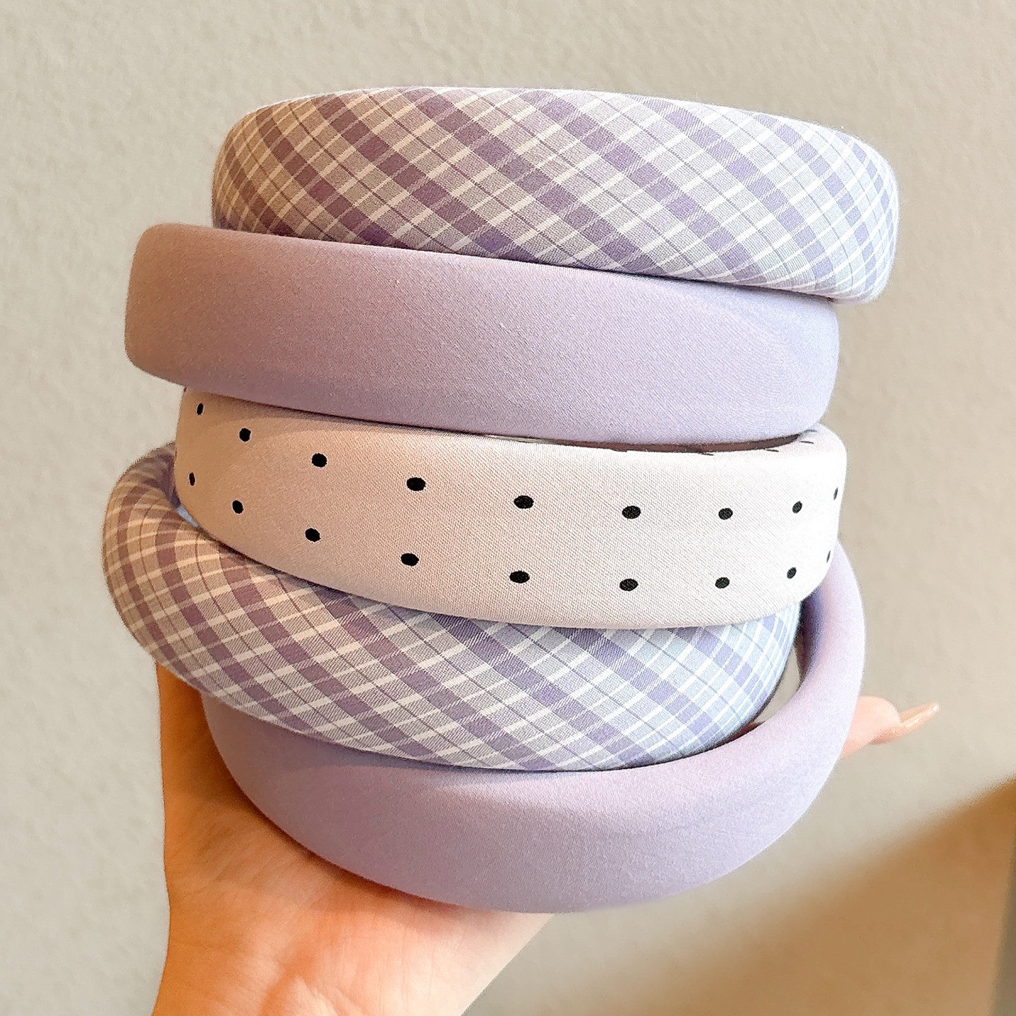 polka dotted purple sponge hair hoop