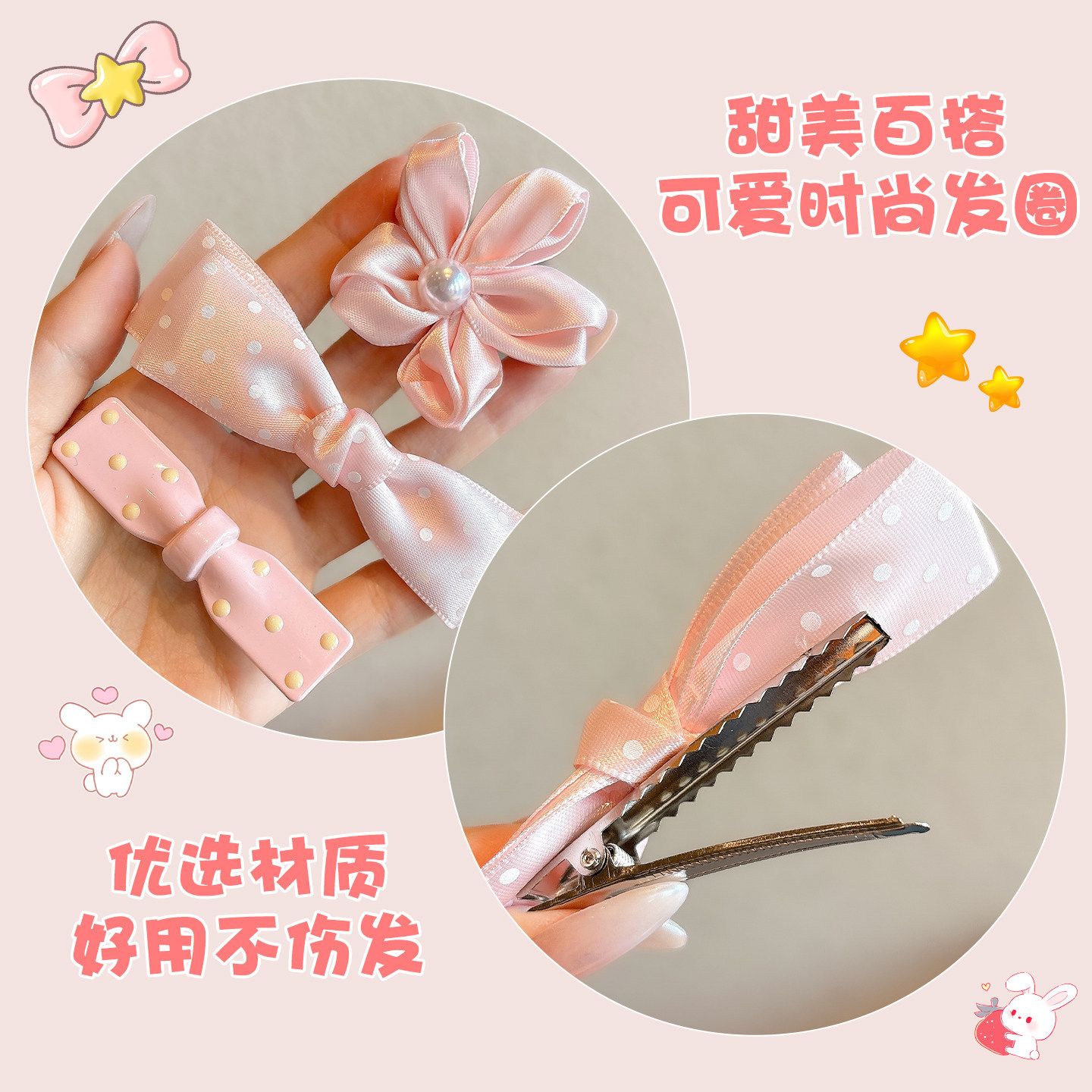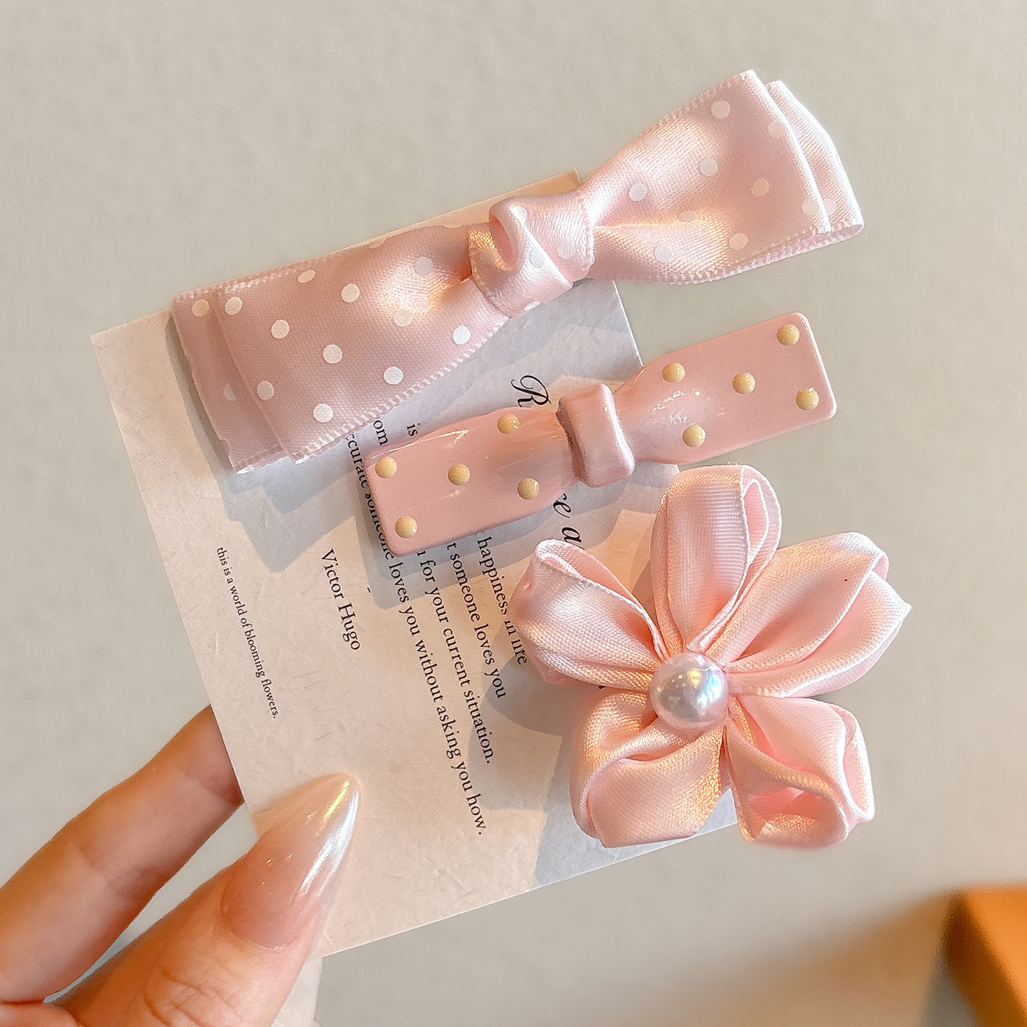 fabric polka-dot bow, approximately 9.5cm