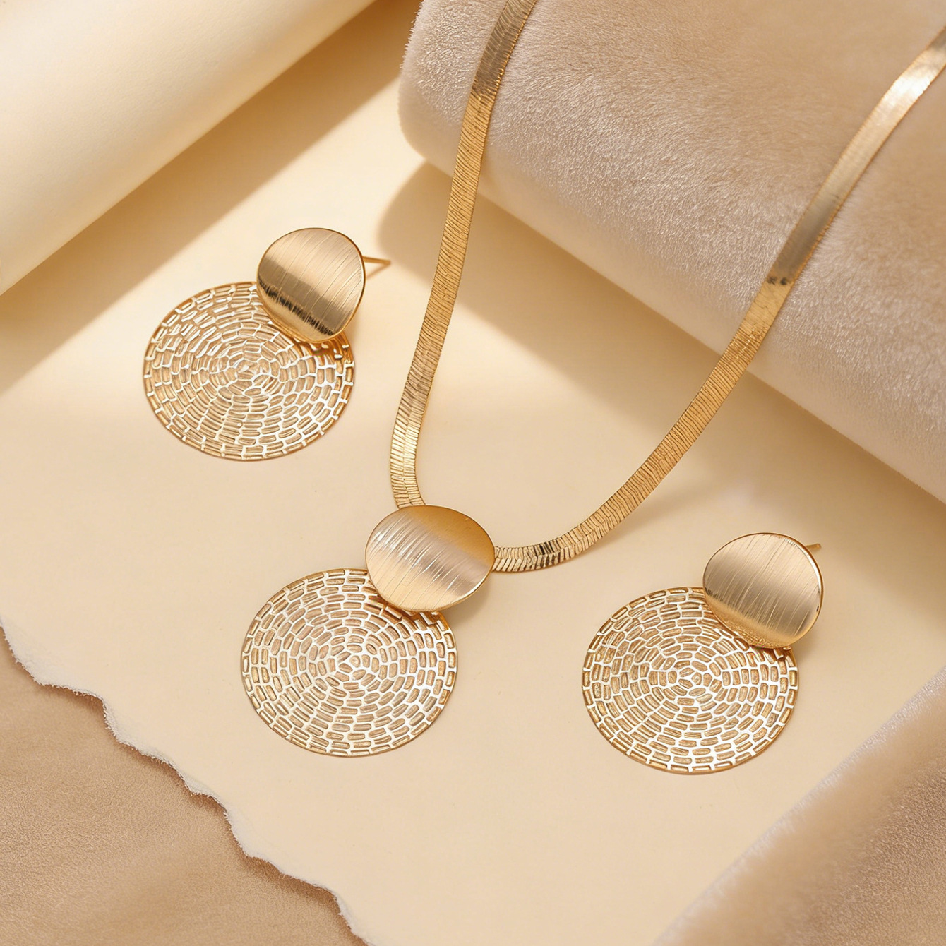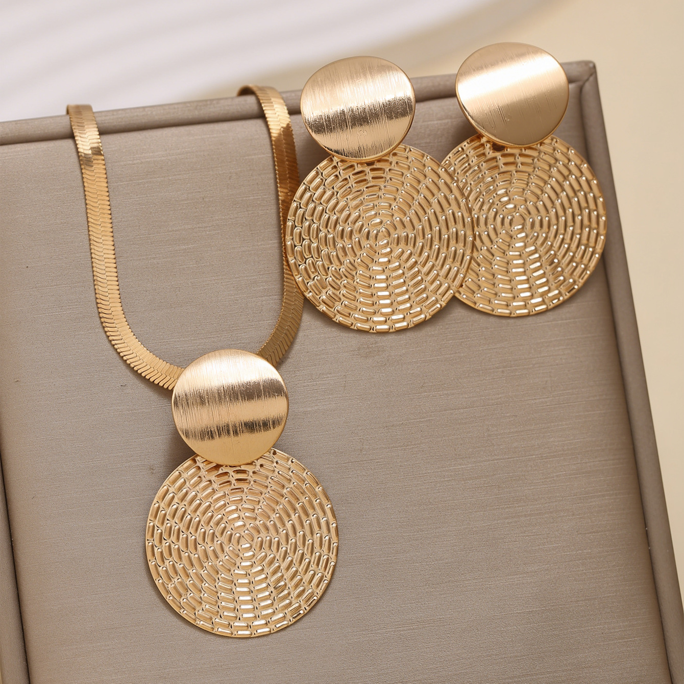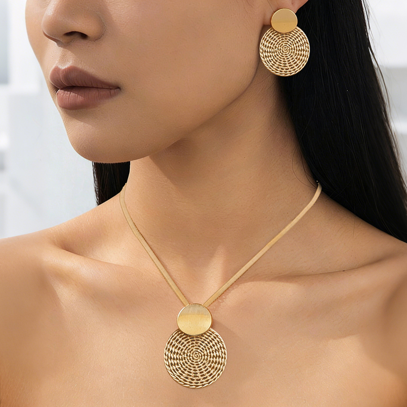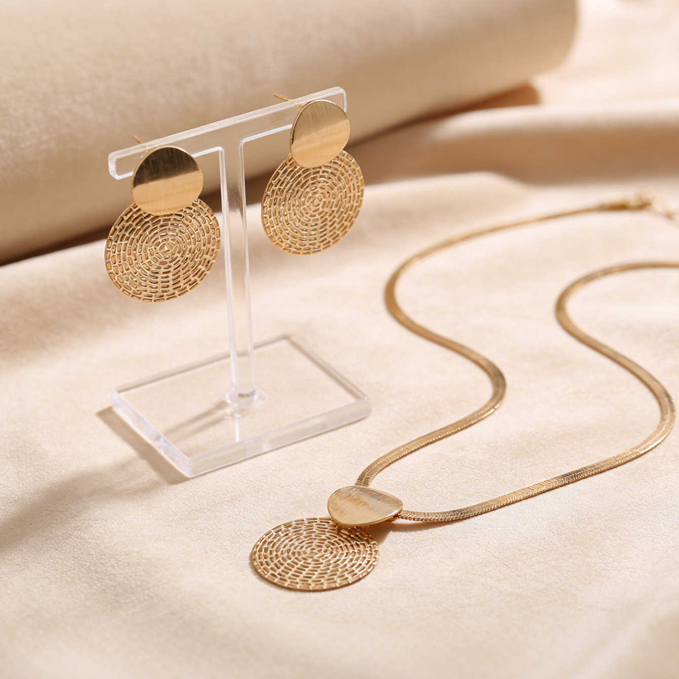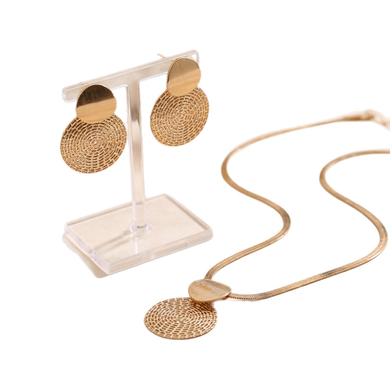 disc earrings necklace-gold color