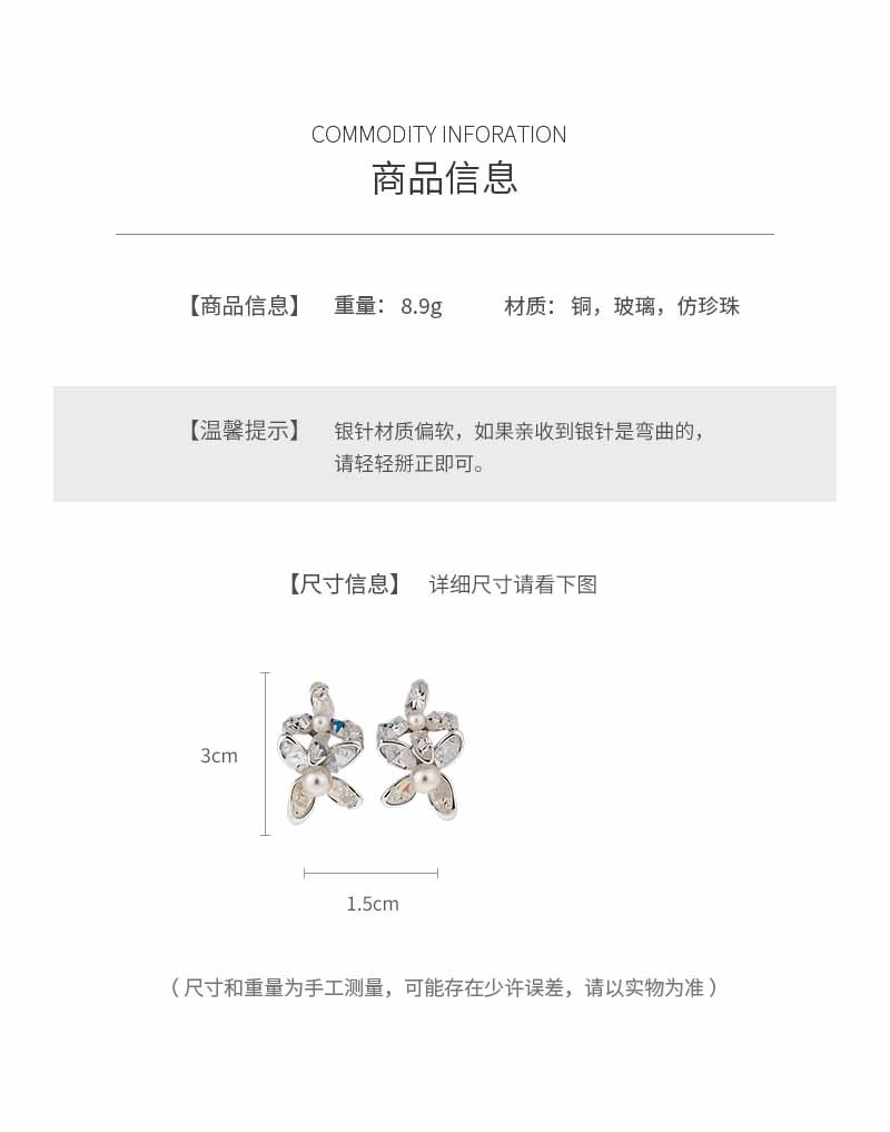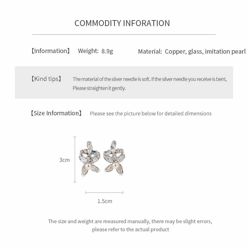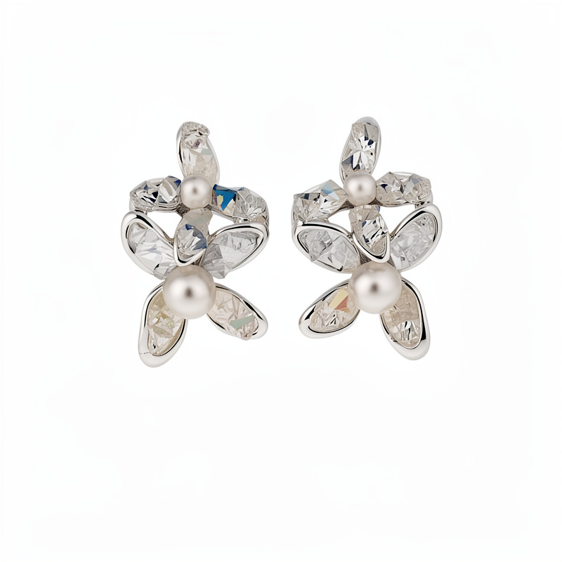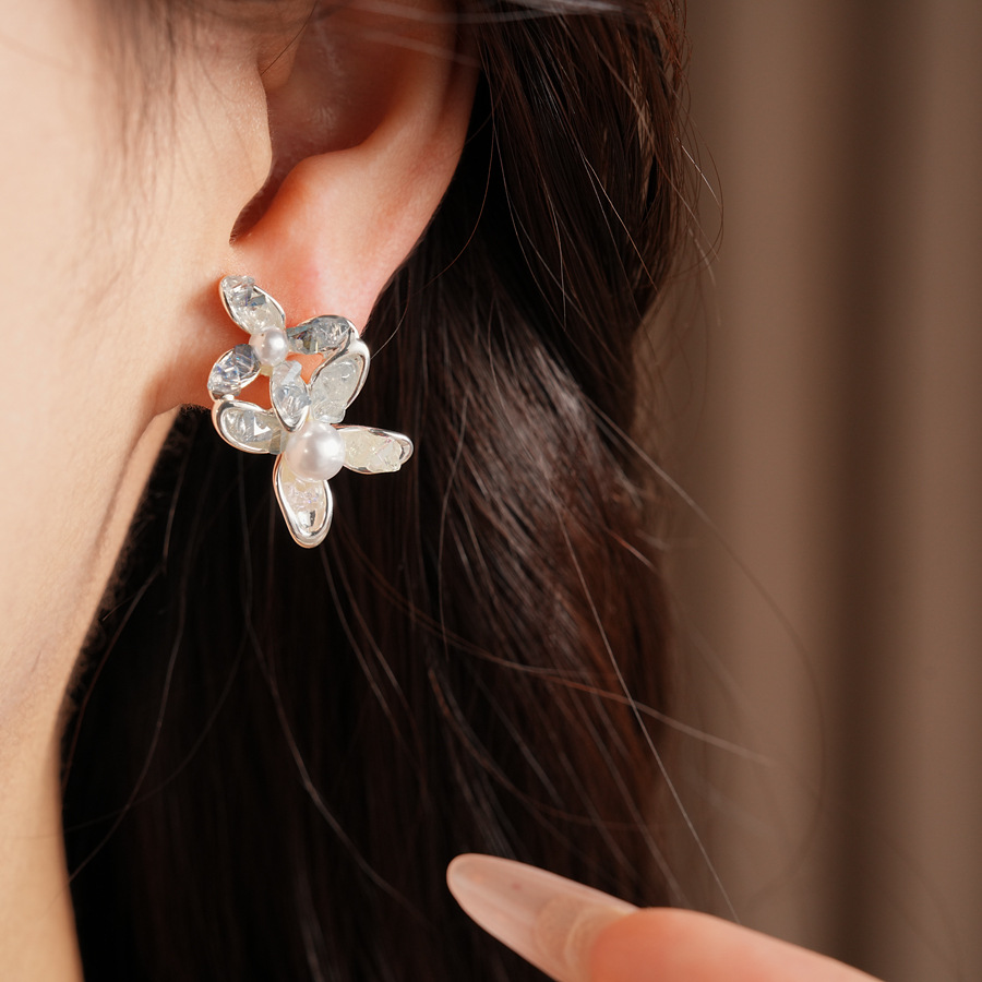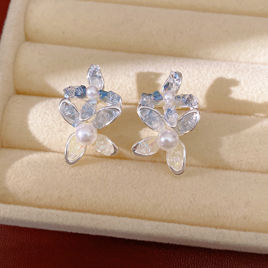 silver needle glass flower pearl stud earrings fresh sweet style beautiful fashion earrings light luxury high-grade earrings wholesale
