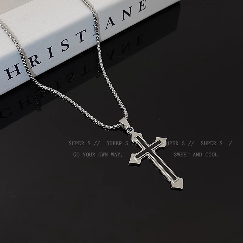 cylindrical cross necklace-titanium steel