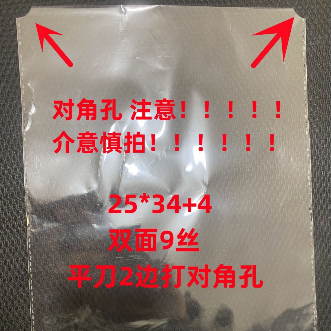 25cm wide * 34cm long +4 flaps, double-sided, 0.09mm thick, 100 pieces (flat-cut diagonal holes; see the bottom four photos in the main image). CN¥ 10.87