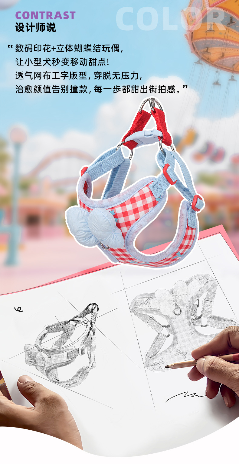 new dog harness plaid printed lightweight thin type small dog dog hand holding rope outdoor dog walking special hand holding rope