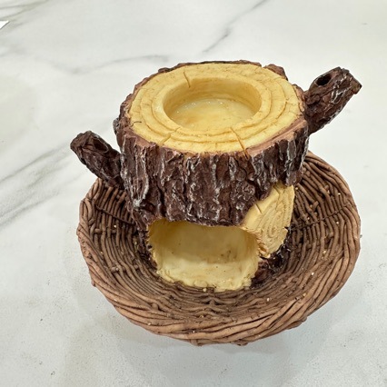 color: tree stump bird nest feeder