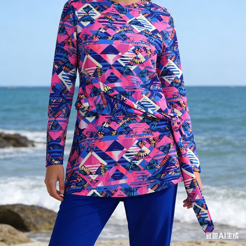 分体两件套 长袖长裤数码印花女士沙滩温泉游泳衣