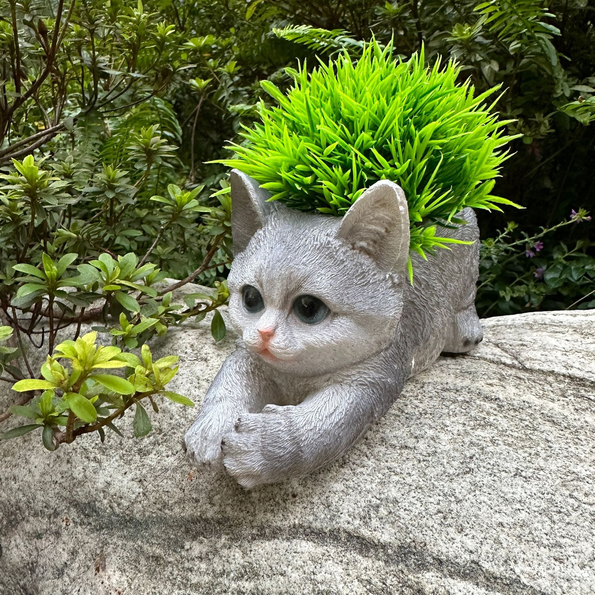 kitten gray flower pot