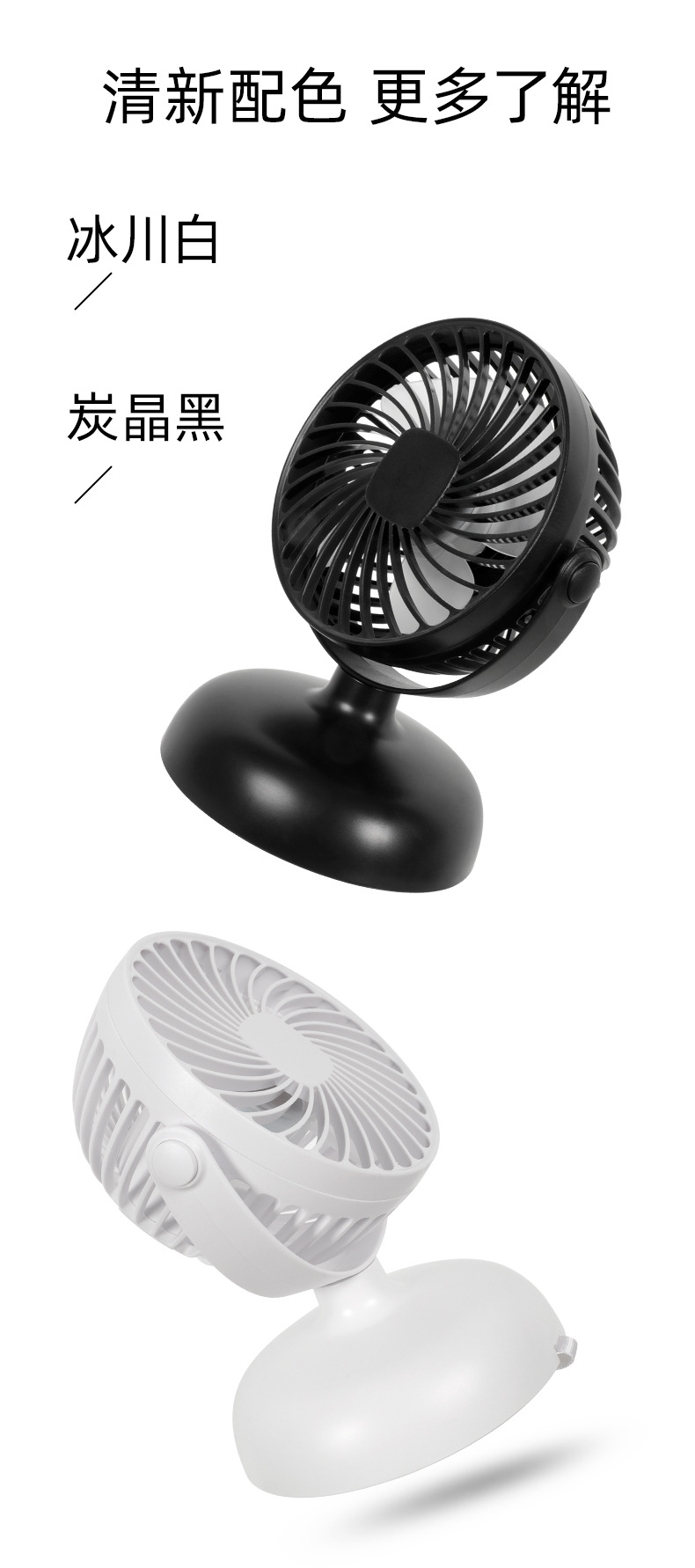 color: dark blue * clip fan, white * desktop fan, black *