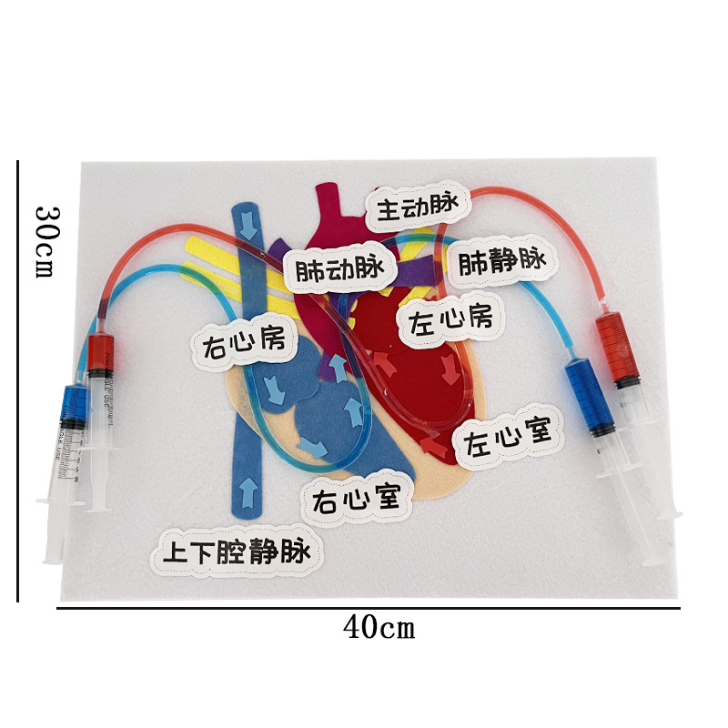 2. Materials include 1 piece of 40*30*0.5cm foam board, 1 piece of 40*30*0.1cm gray felt cloth, 1 set of heart model felt accessories, 4 needles, 2 bottles of pigment, 2 soft tubes, 2 transparent cups, and name stickers (Note: You need to bring your own hot glue gun to fix them)