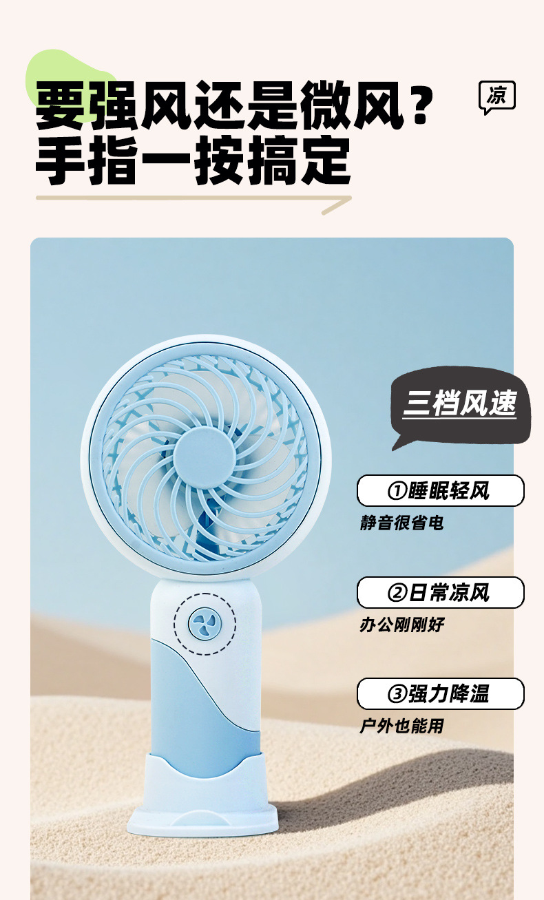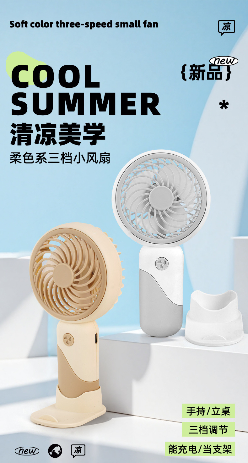 cross-border mini usb rechargeable fan gift for students, three-speed high wind power, outdoor portable desktop small handheld fan