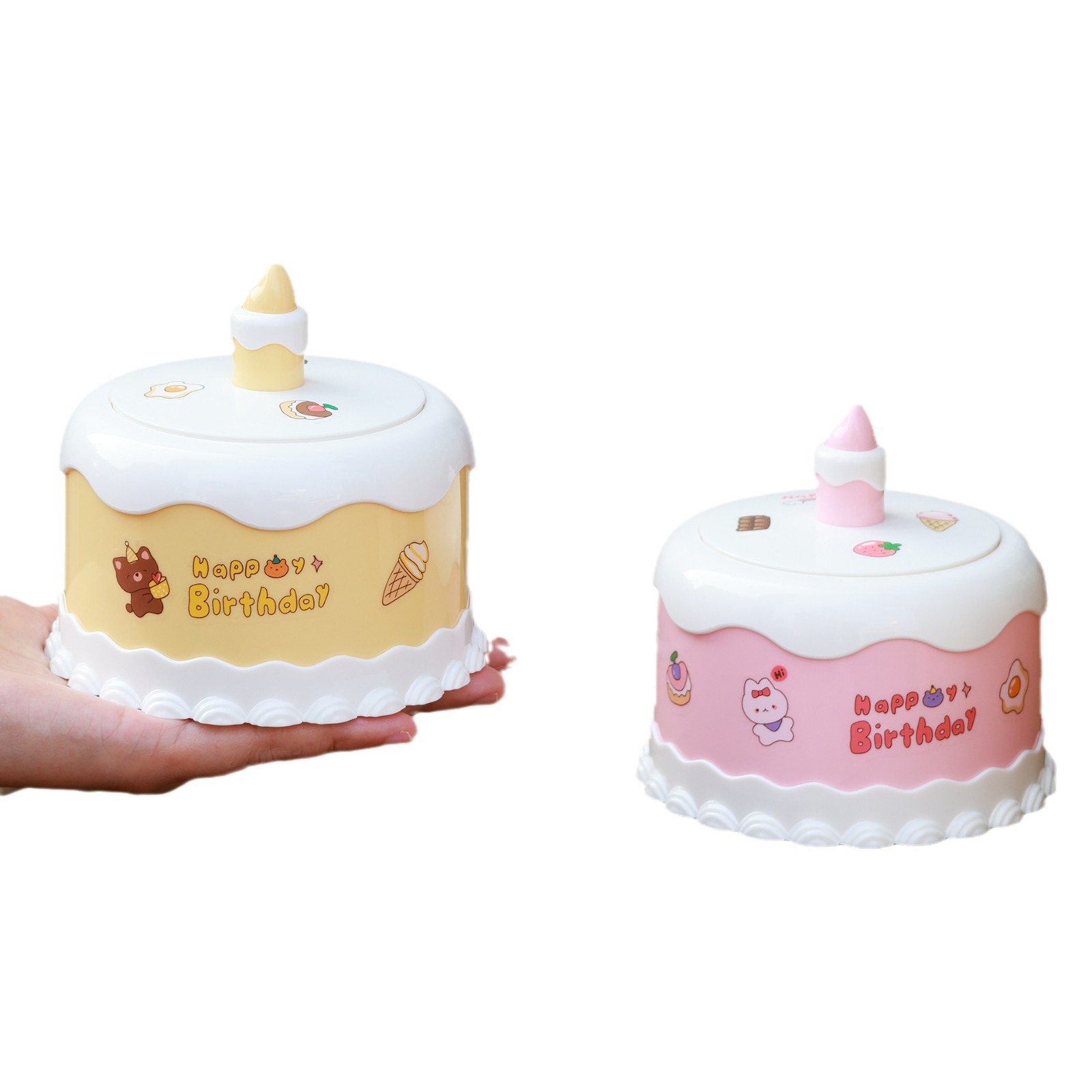 yellow cake light + sticker, pink cake light + sticker, blue