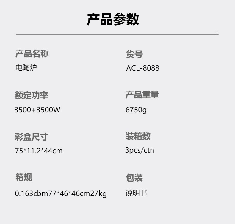 specifications: electric ceramic stove