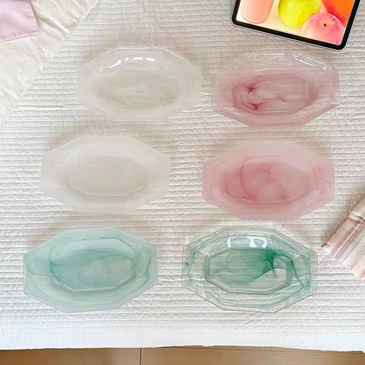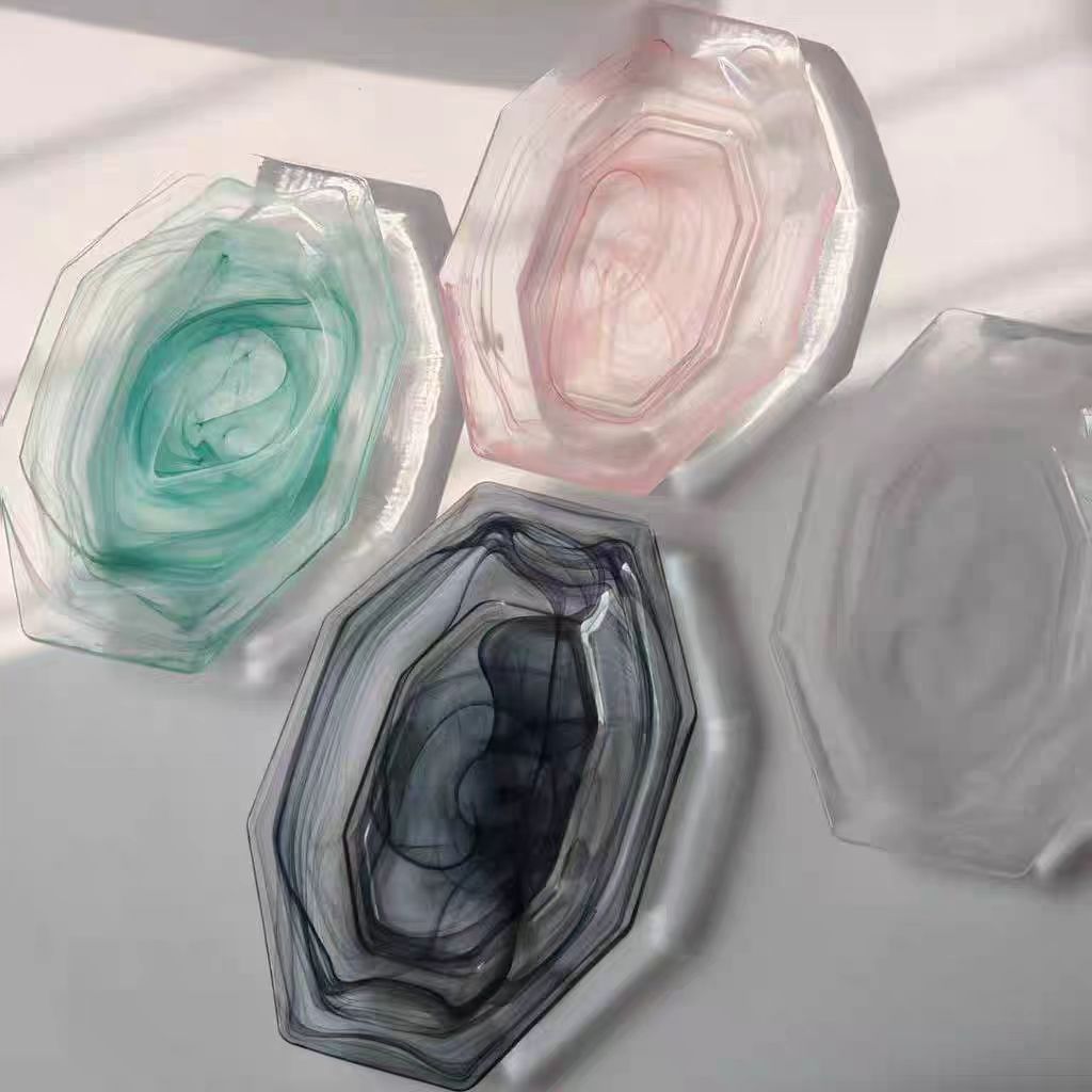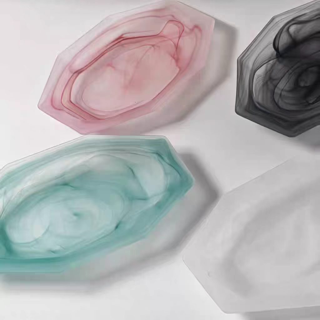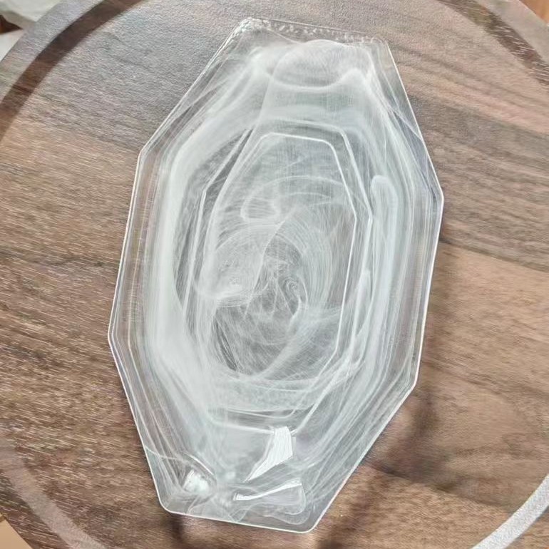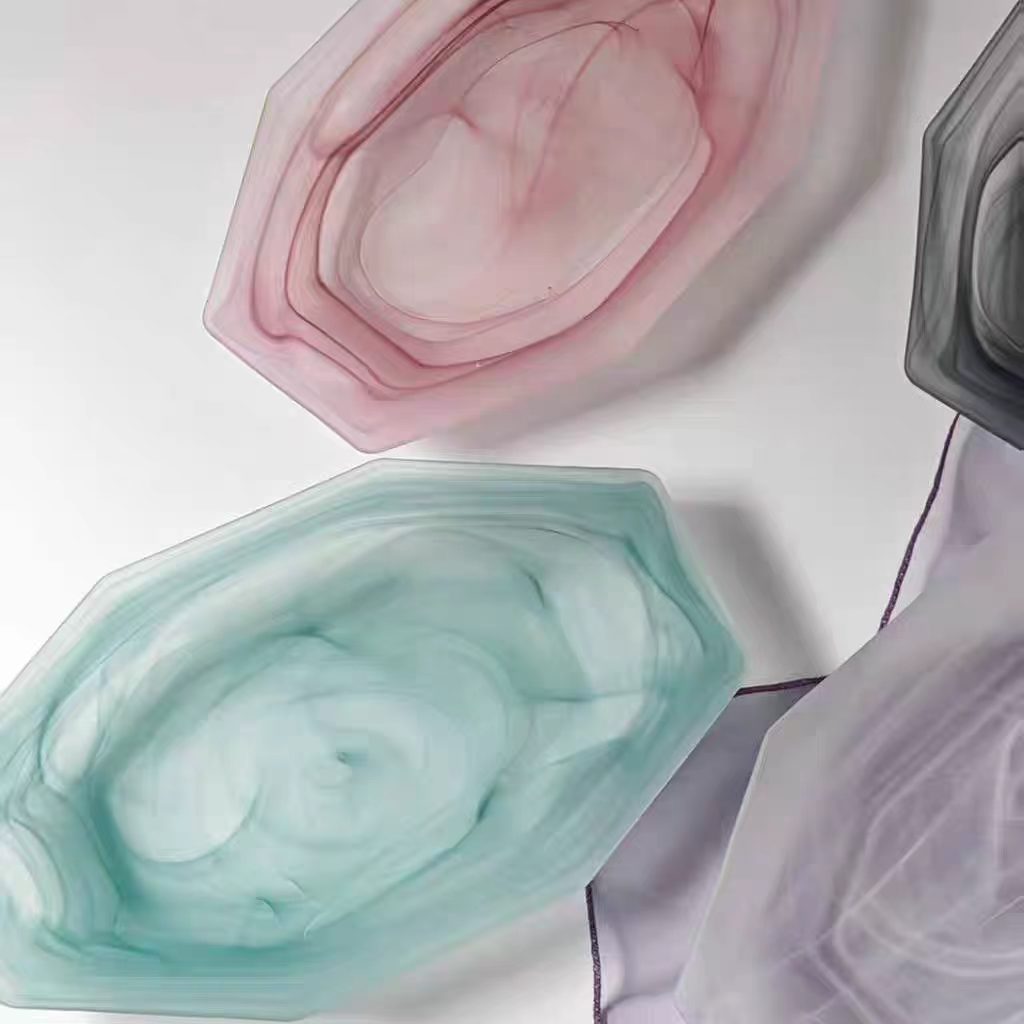 cloud mist cloud pink glass plate western cuisine plate fish dish breakfast plate salad dish high-end long octagonal plate fruit plate