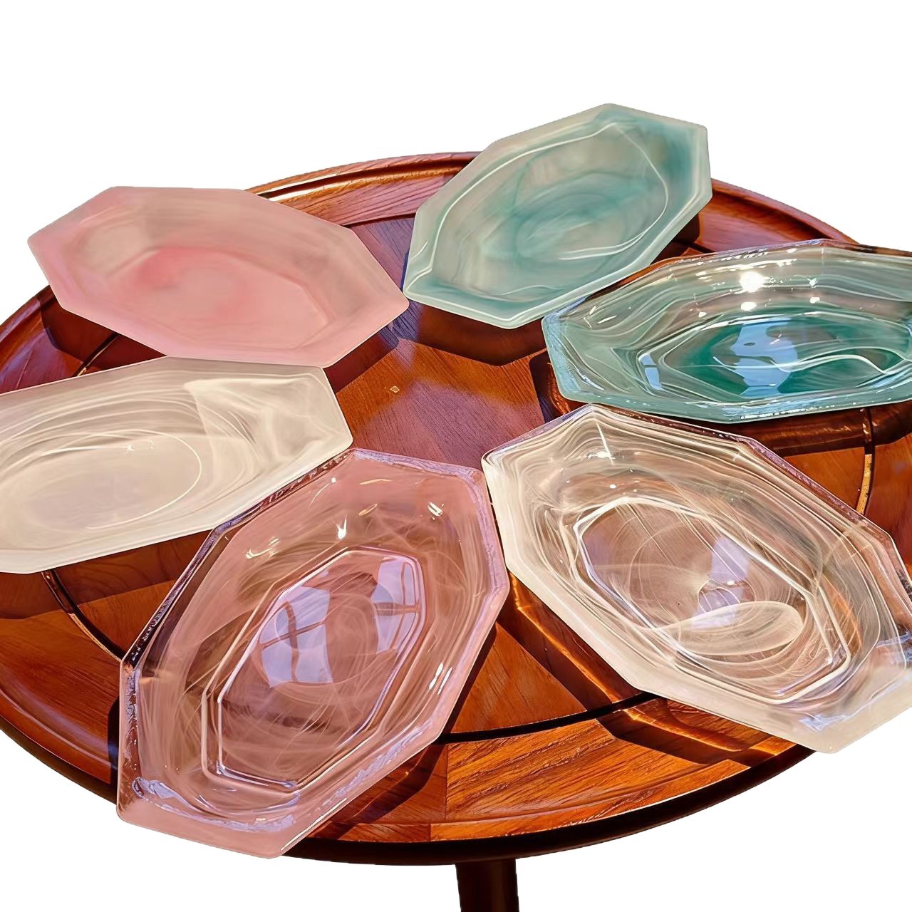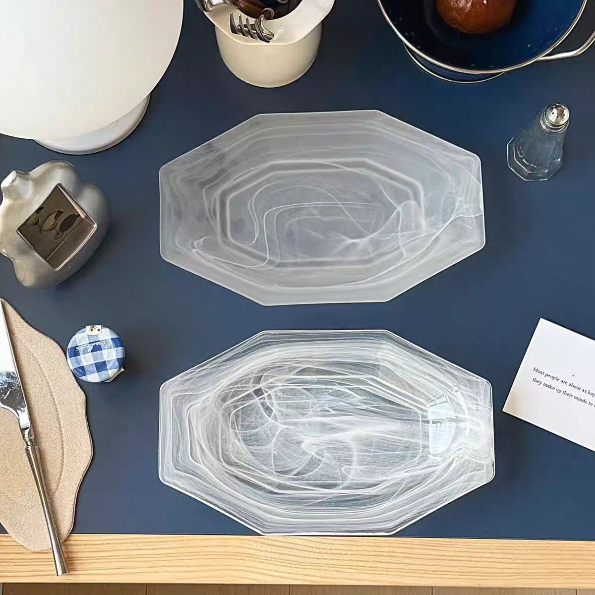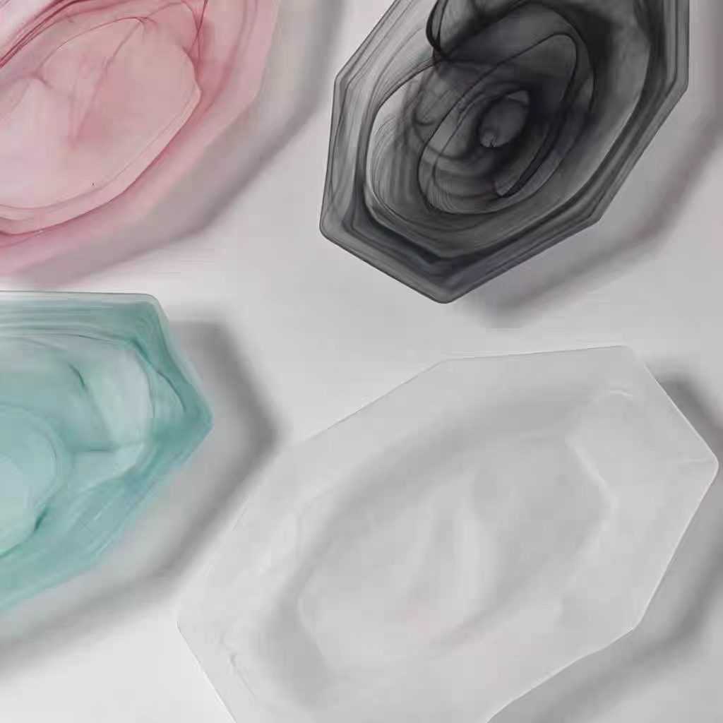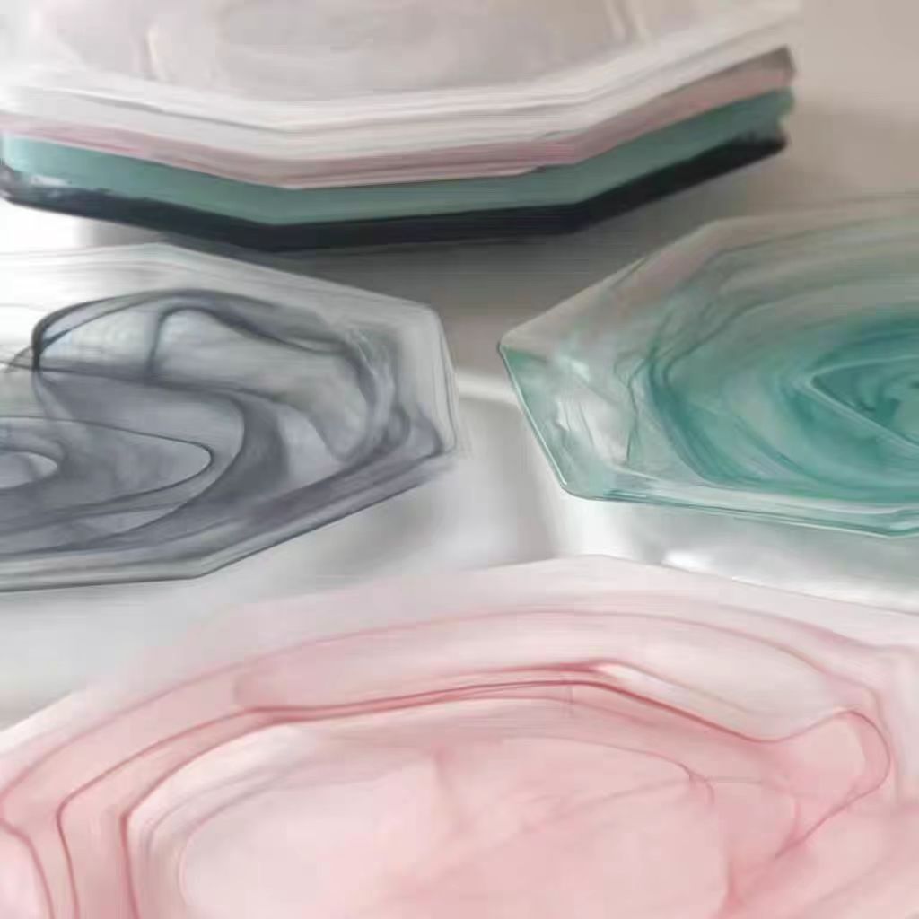 cloud mist cloud pink glass plate western cuisine plate fish dish breakfast plate salad dish high-end long octagonal plate fruit plate