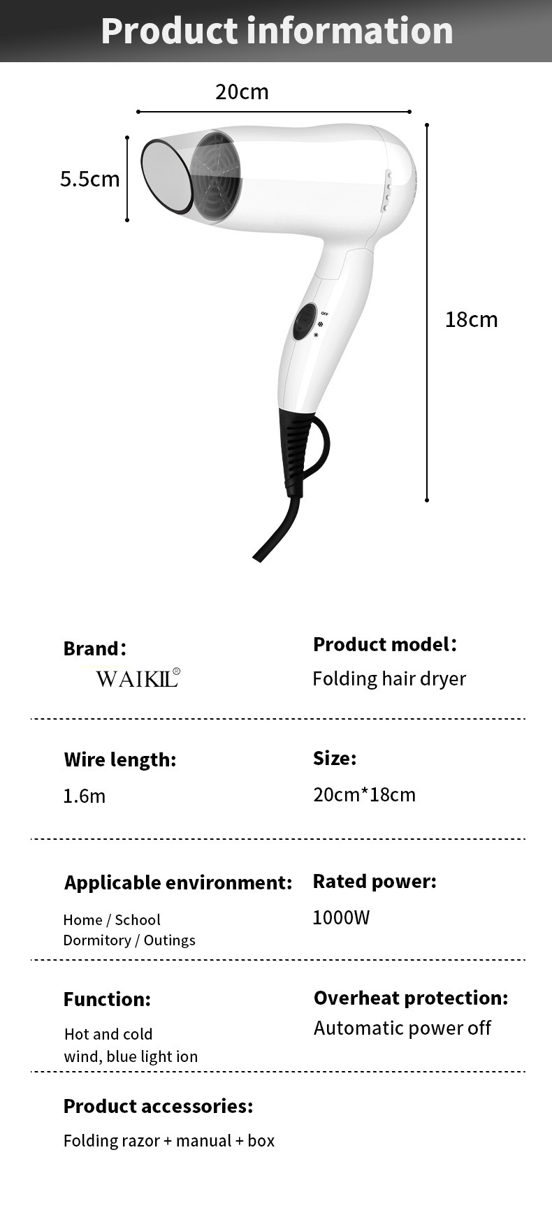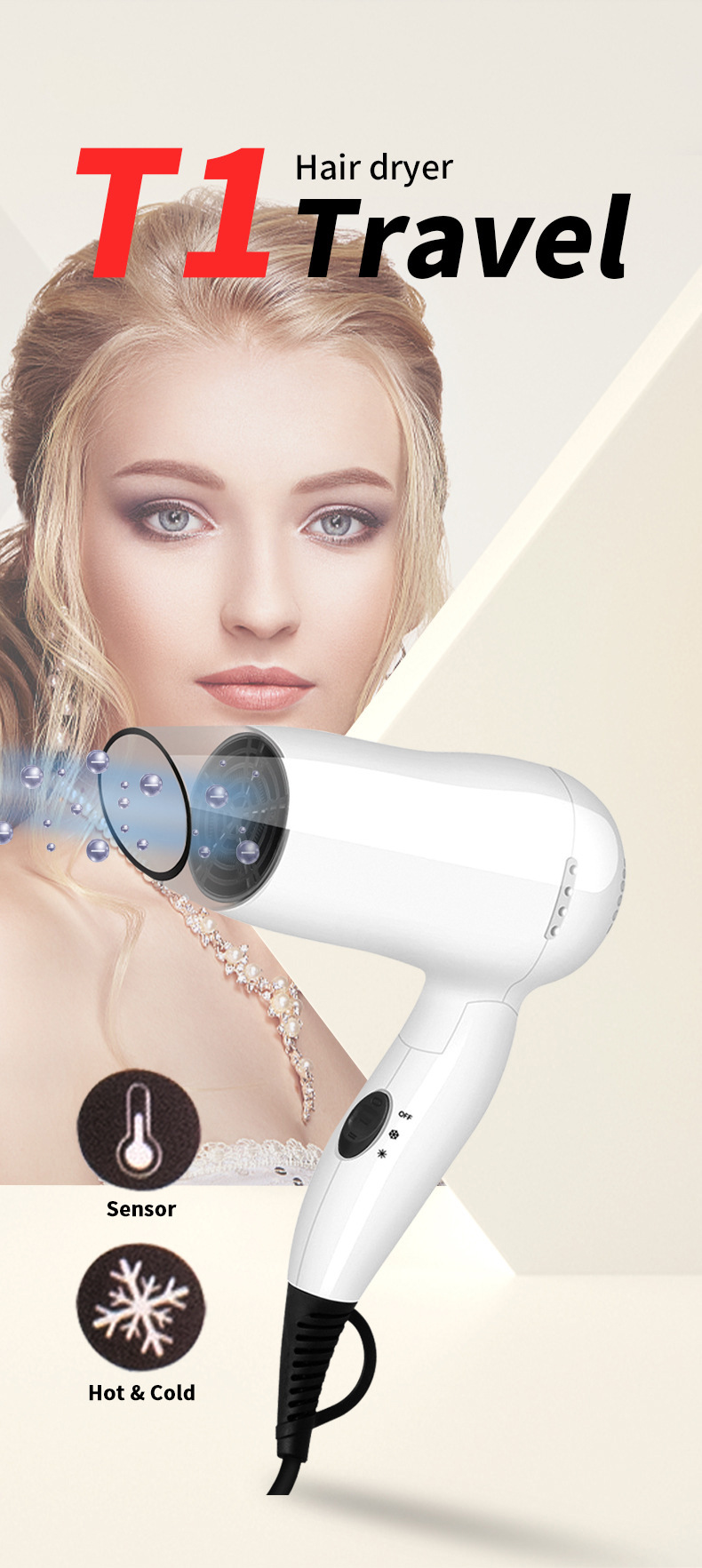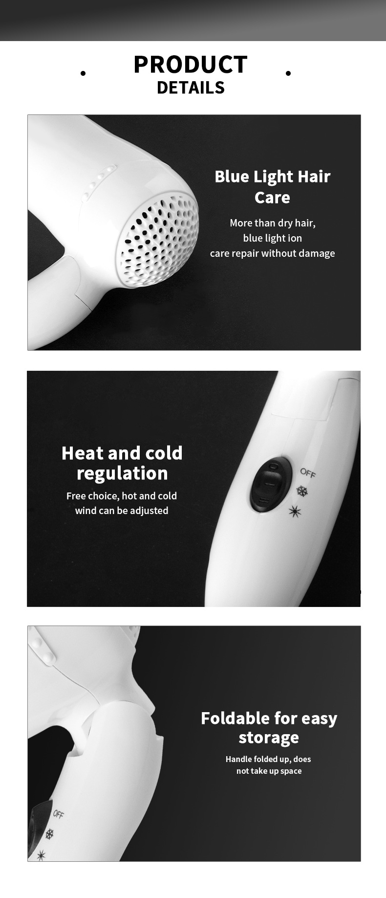 additional features: thermostatic hair care, hot and cold alternating wind