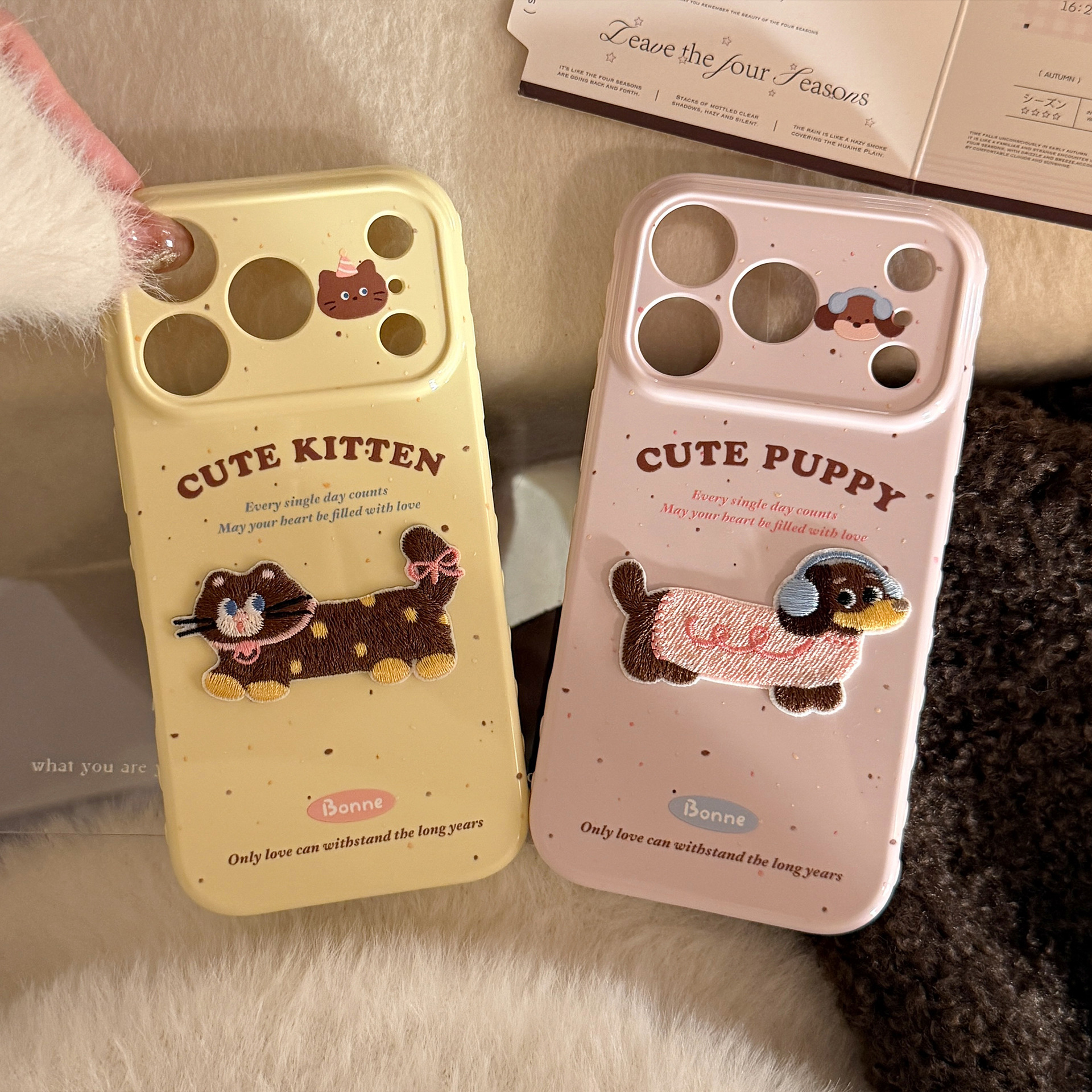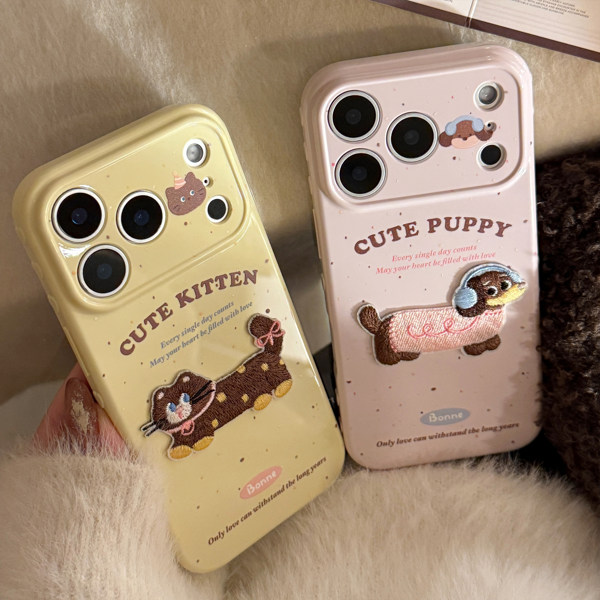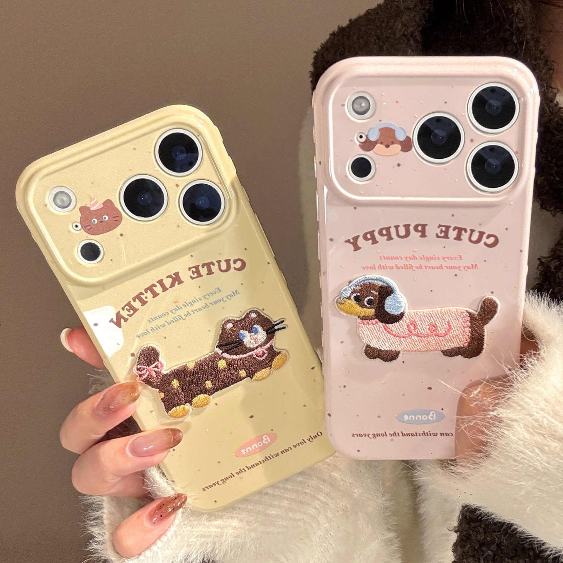 suitable for iphone17promax three-dimensional embroidery dogs and cats apple 16 phone case 13 couple 14 niche 15 soft cover