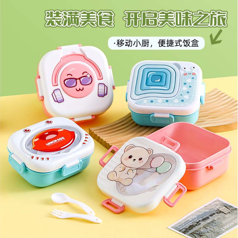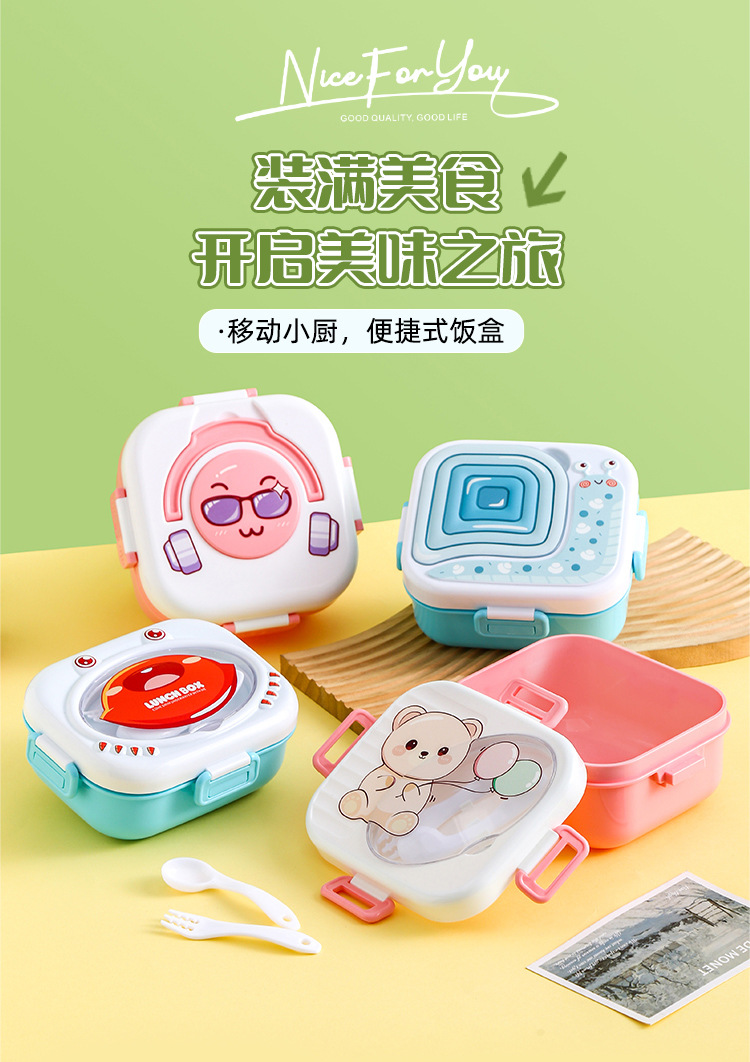 Product Name: Little Happy Bear Lunch Box 1000ml | Color: Blue/Pink | Material: PP | Packaging: Bag