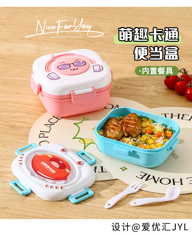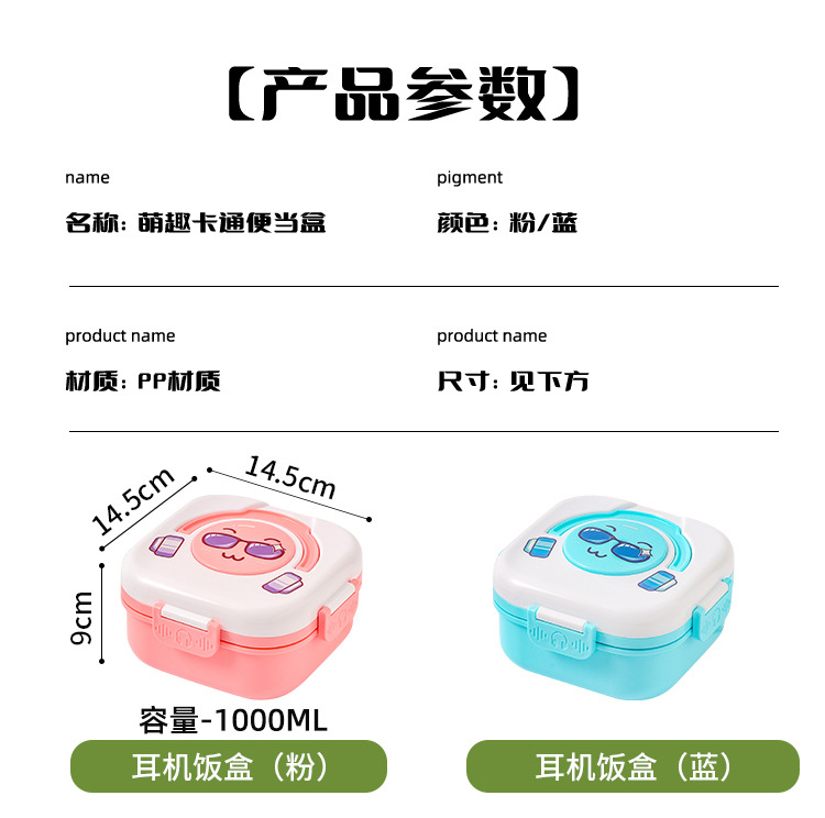 Product Name: Headphone Lunch Box with Stainless Steel Spoon (1000ml) | Color: Blue/Pink | Material: PP | Packaging: Bag