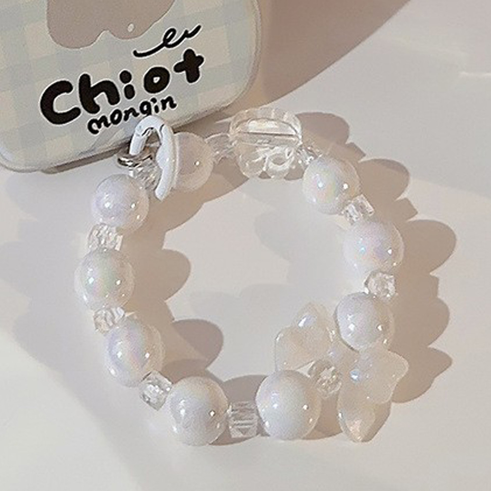 rhinestone white pearl bracelet + transparent card