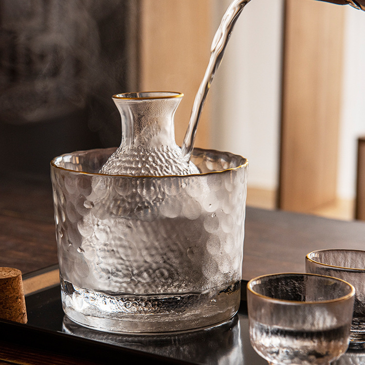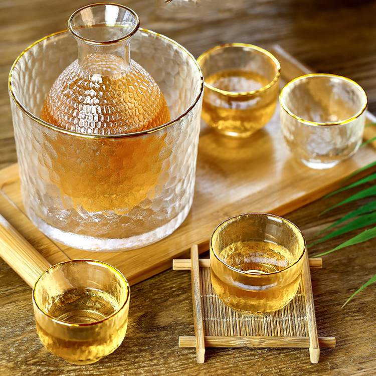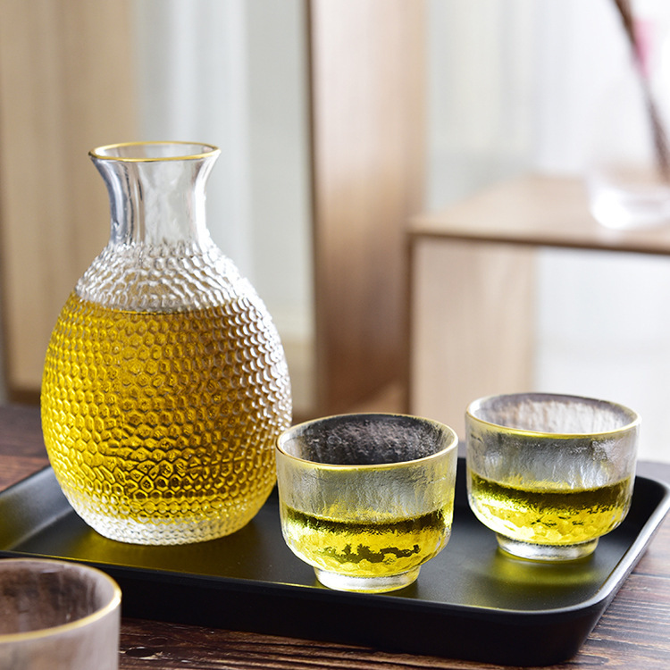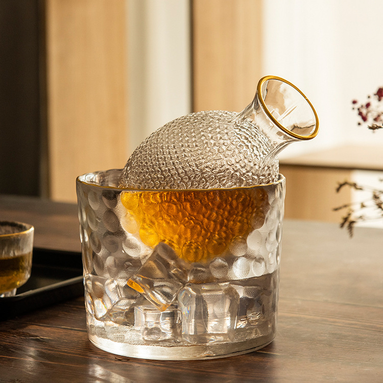 transparent please wine glass, transparent clear wine pot, transparent clear wine cylinder, gold