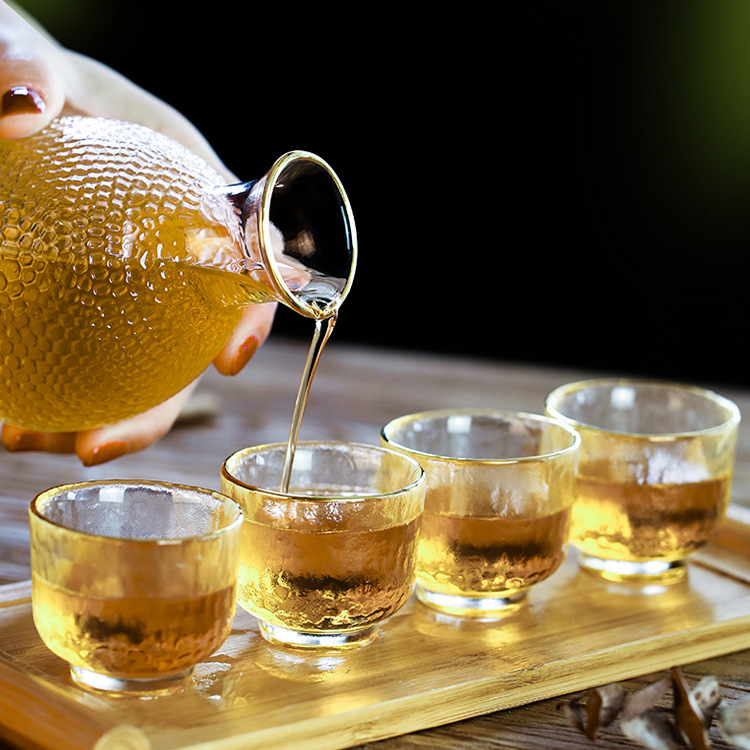 color: transparent please wine glass, transparent clear wine pot, transparent clear wine cylinder, gold
