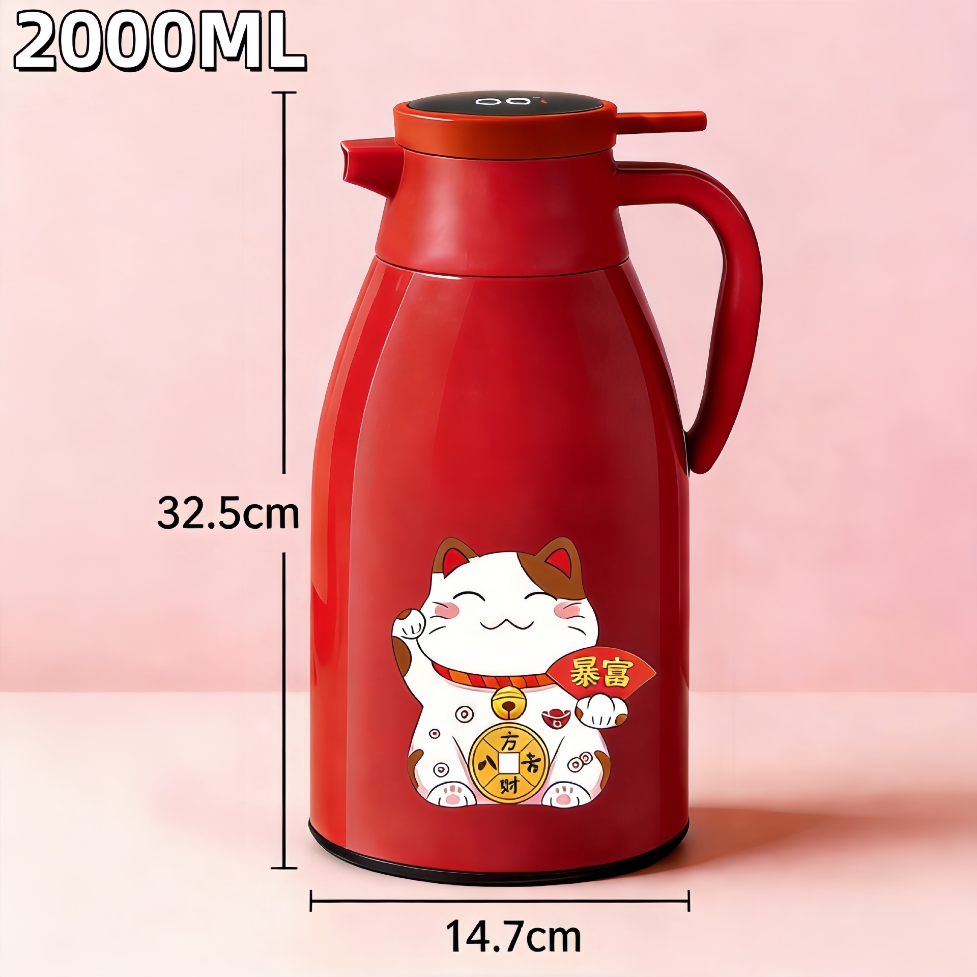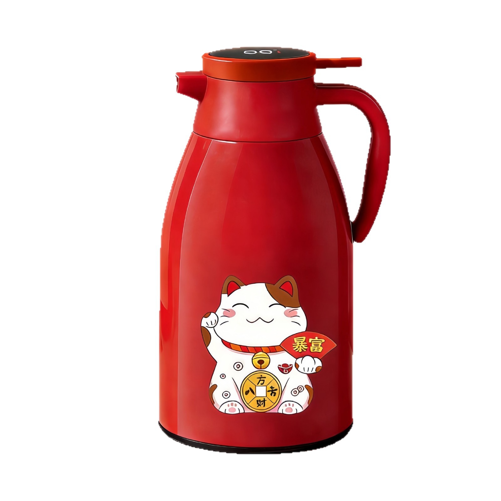 red 1.9l digital display thermal flask + lucky cat sticker