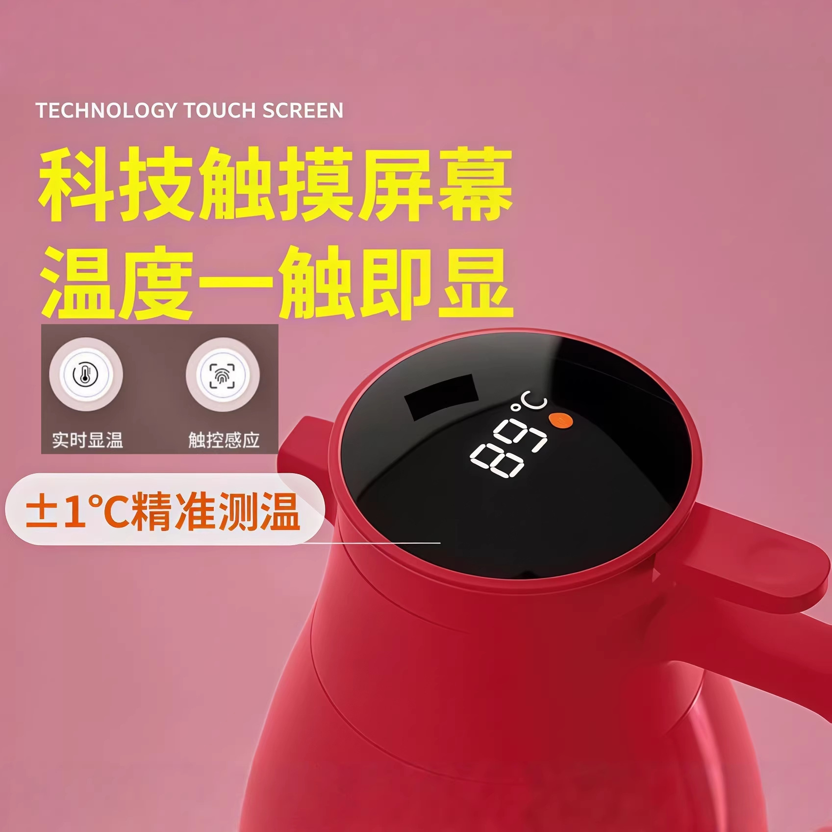 orange 1300ml digital display dust-proof thermal carafe