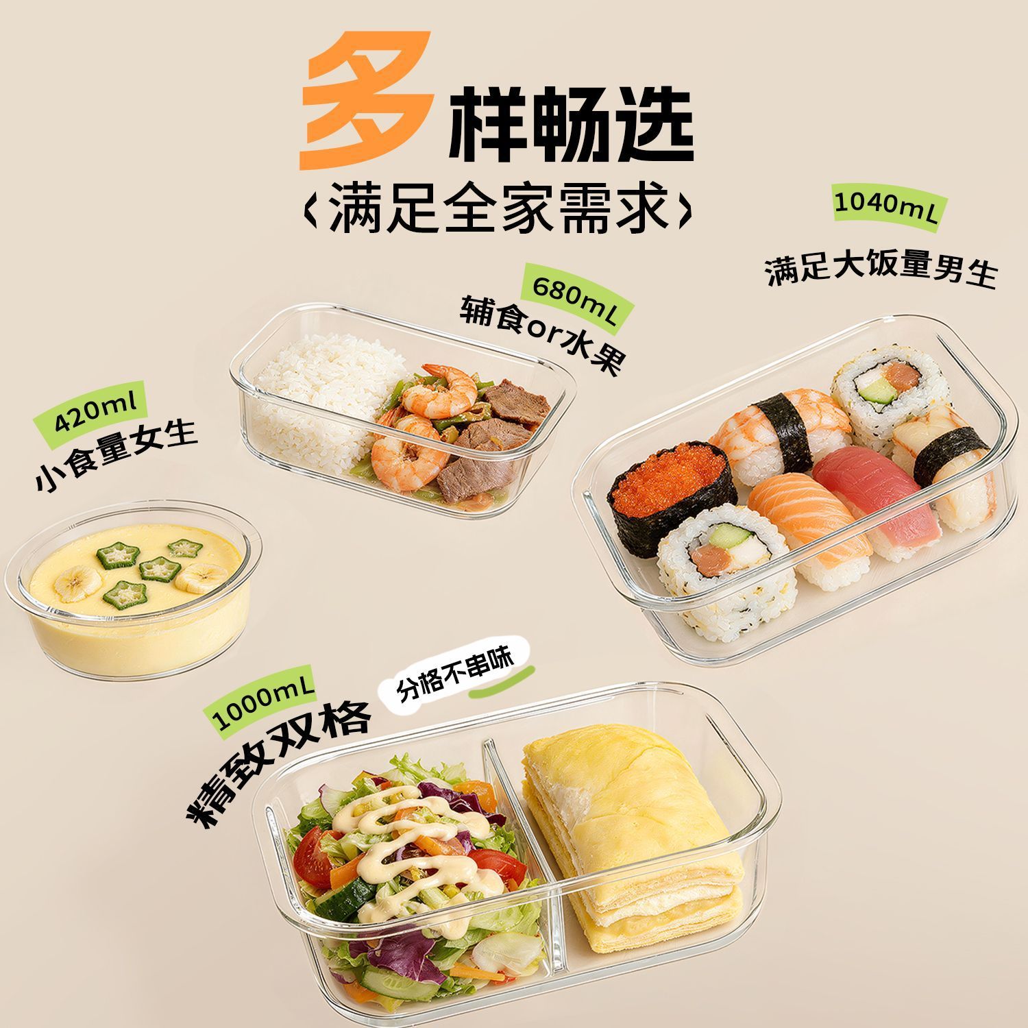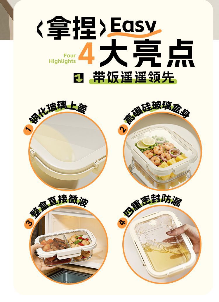 [large capacity 960ml] three-compartment design | tempered glass + high borosilicate glass