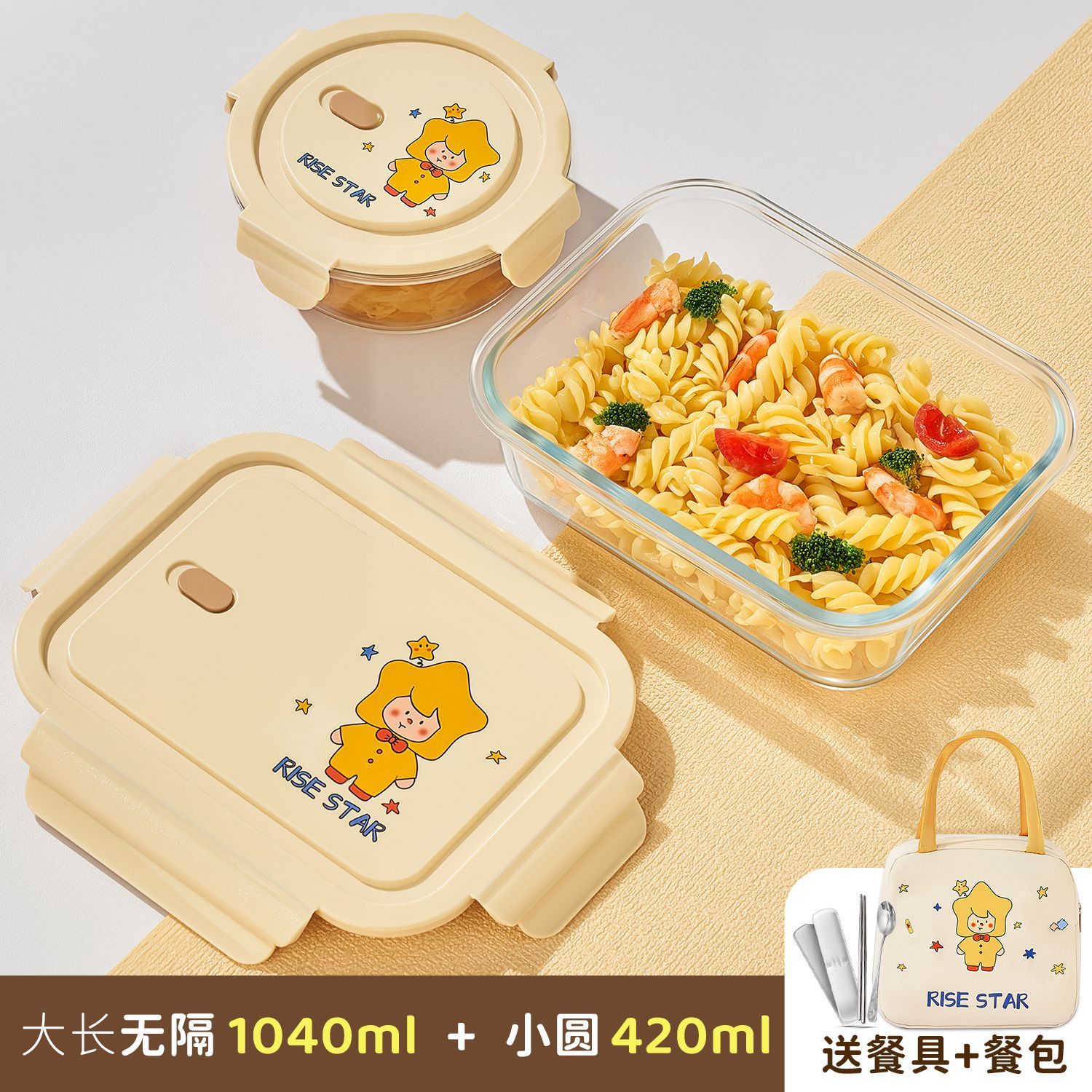 large long 2 compartments + small circle + lunch bag + tableware