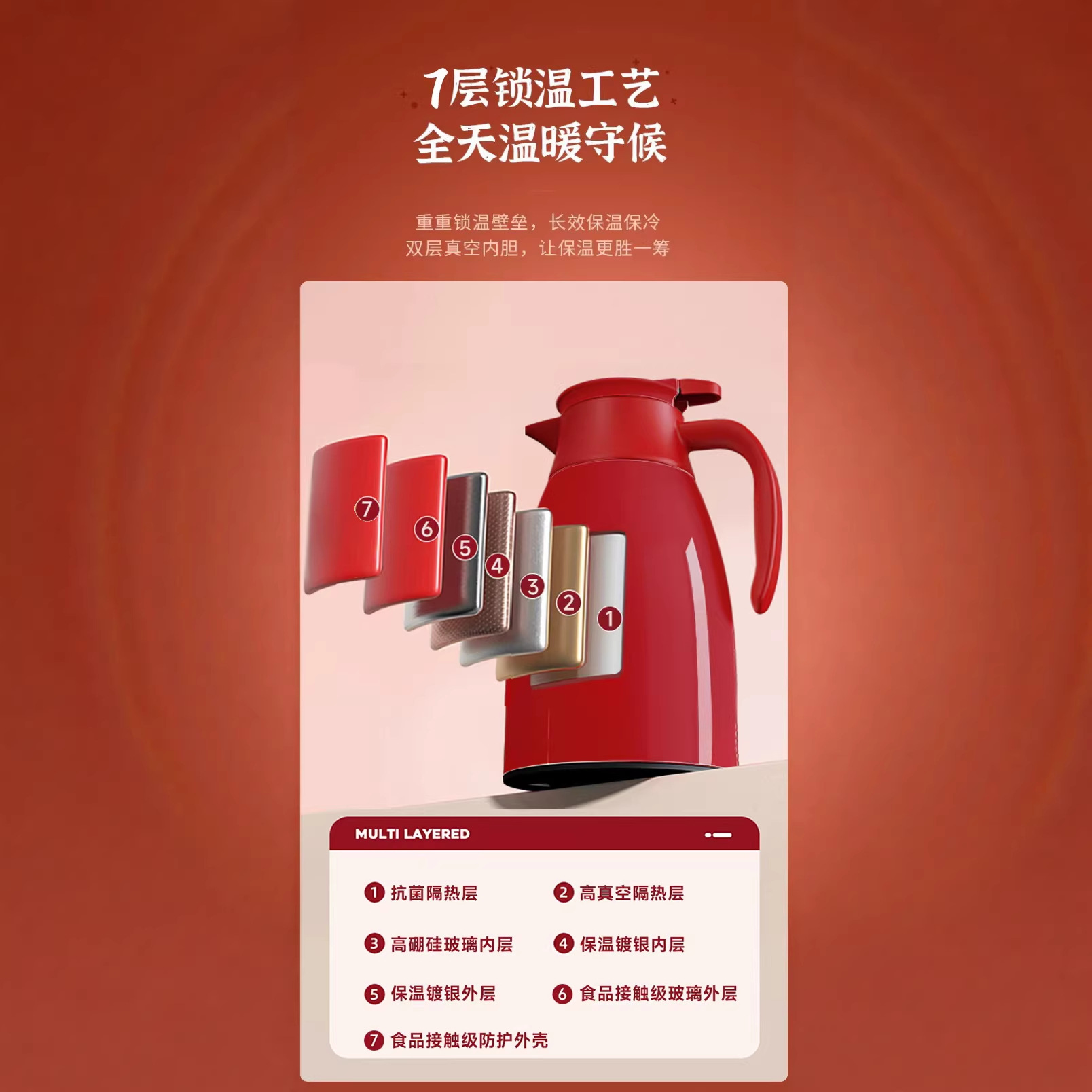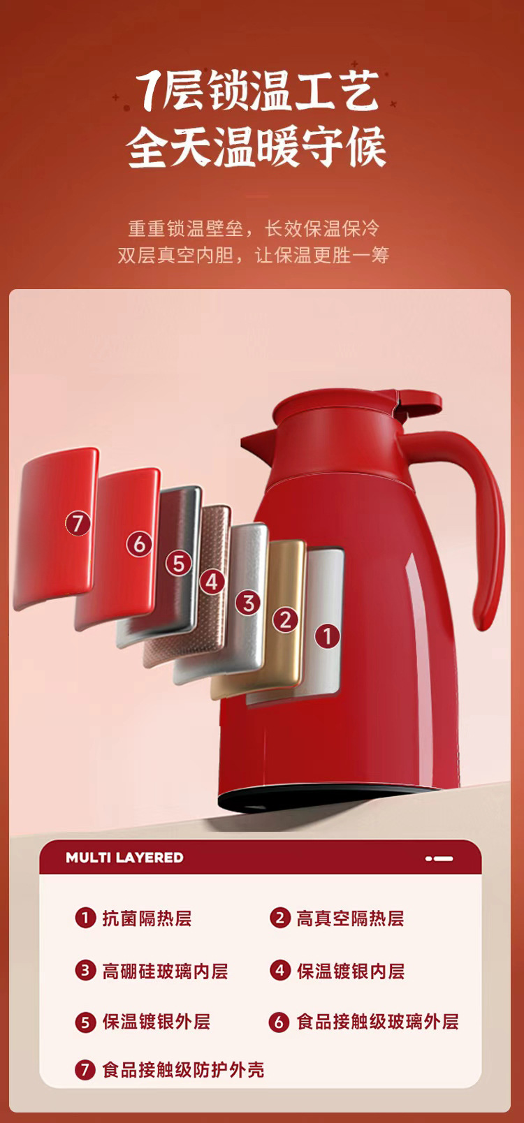 light luxury custom temperature display in red, 2000ml [shipped from xinmiya brand factory]