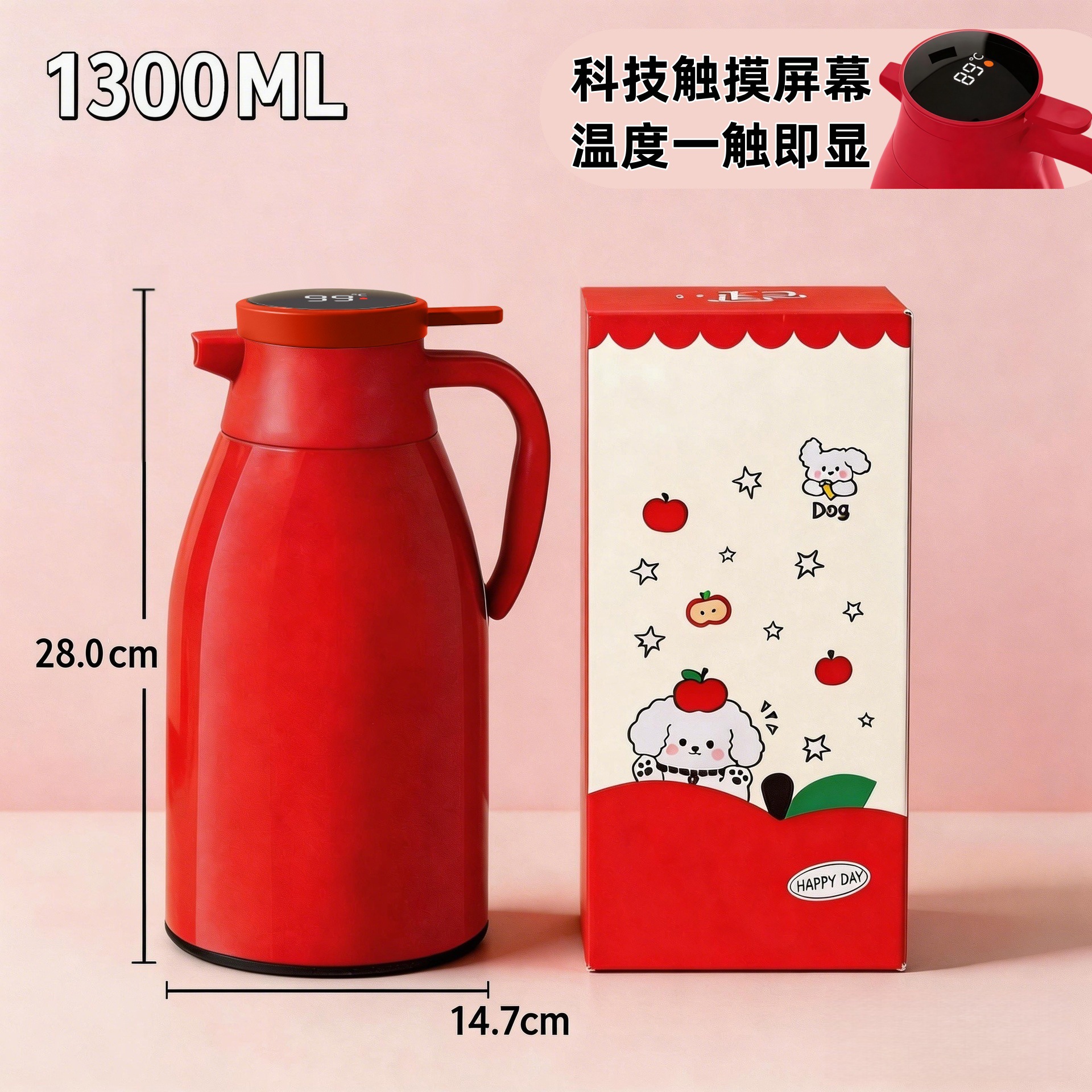 light luxury custom temperature display in red, 1300ml [shipped from xinmiya brand factory]