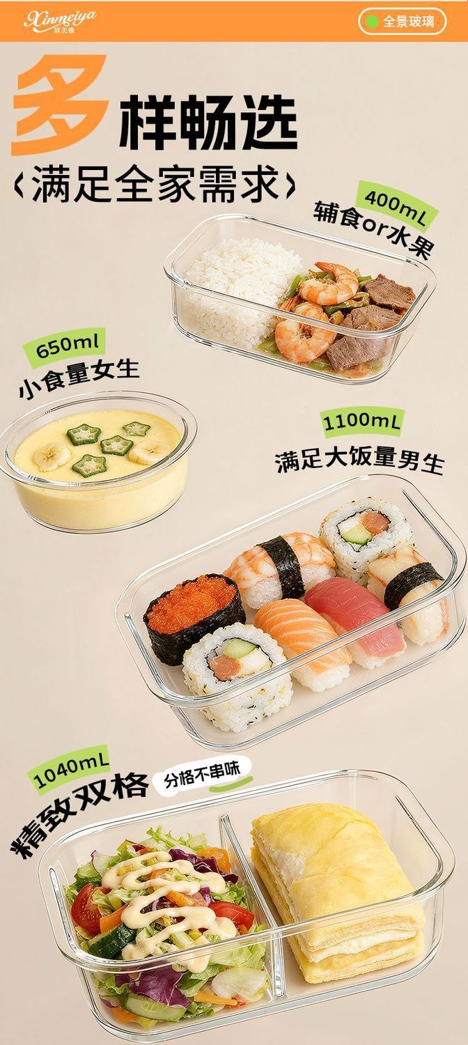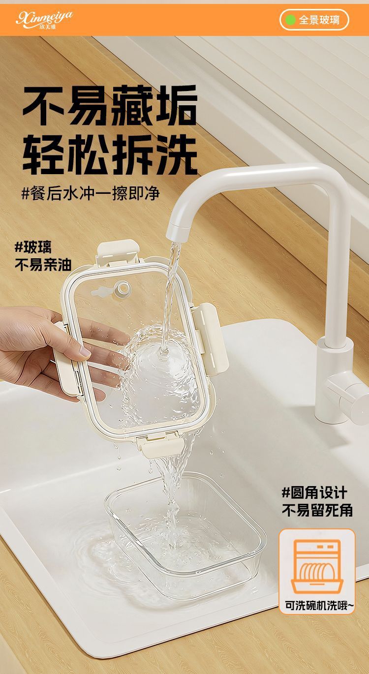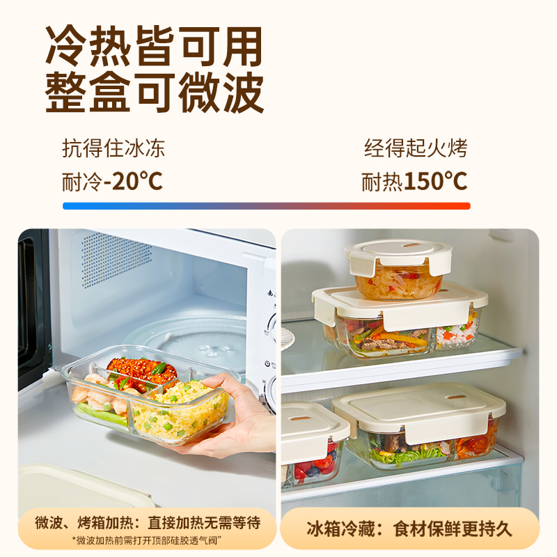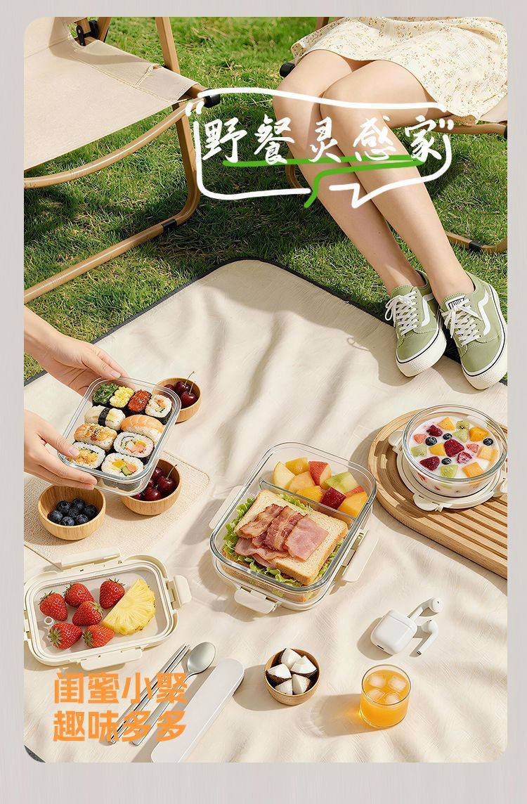 [large capacity 960ml] three-compartment design | tempered glass + high borosilicate glass