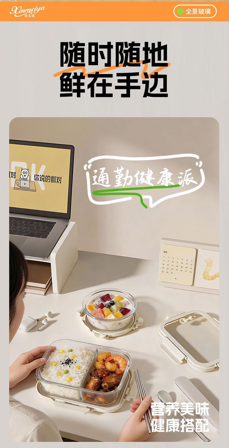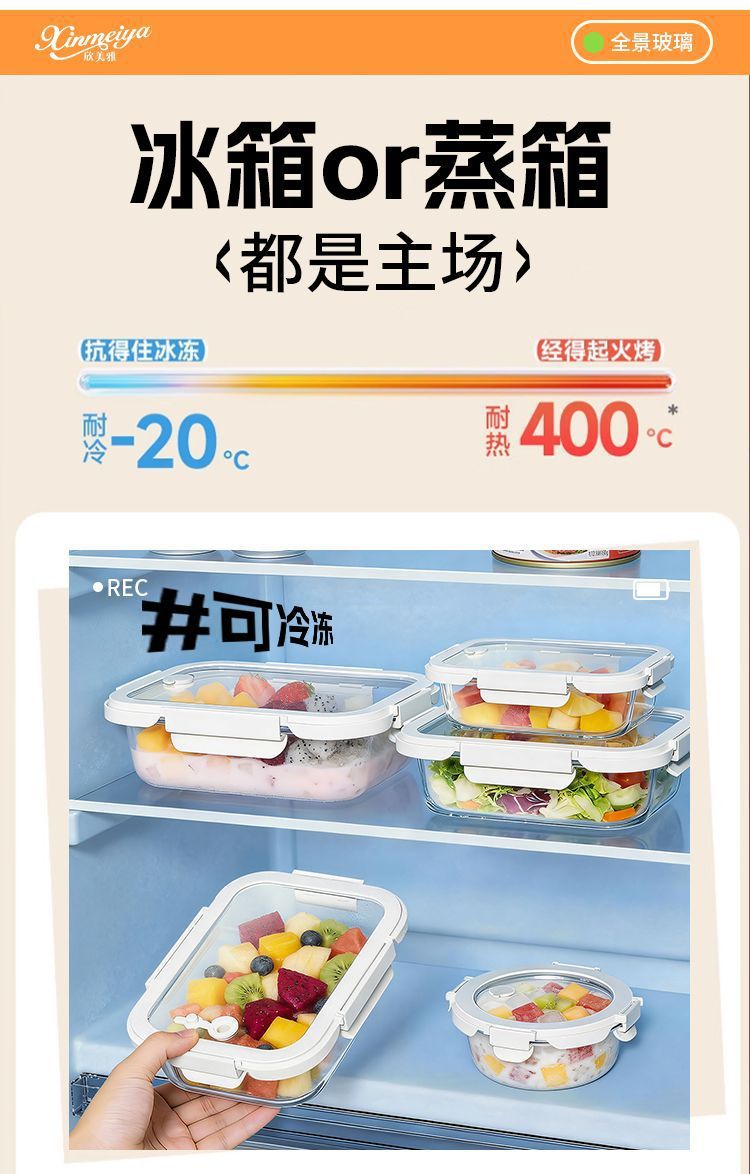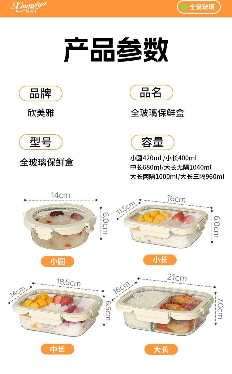 [large capacity 960ml] three-compartment design | tempered glass + high borosilicate glass