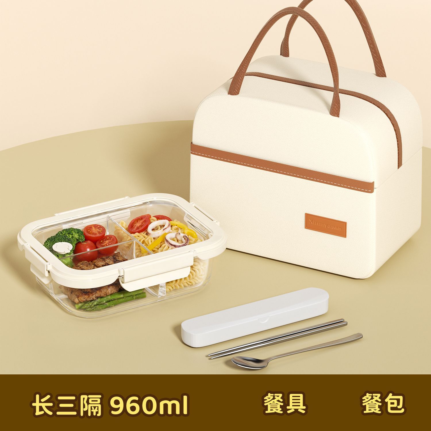 [large, 960 ml] three compartments | insulated bag + tableware